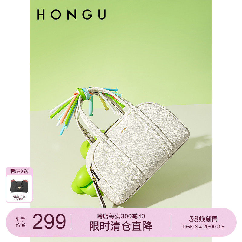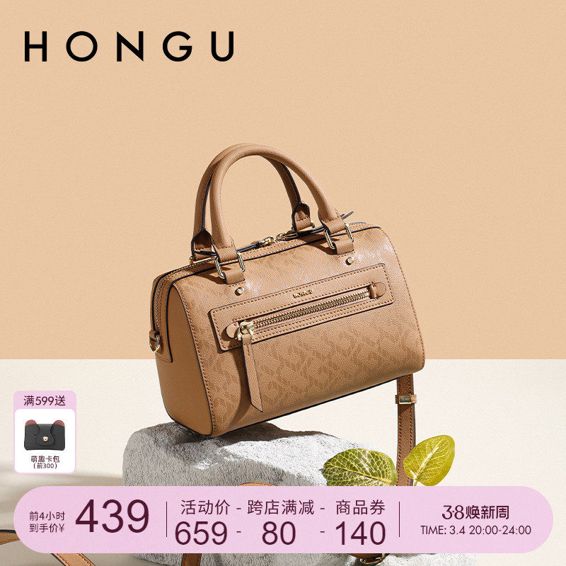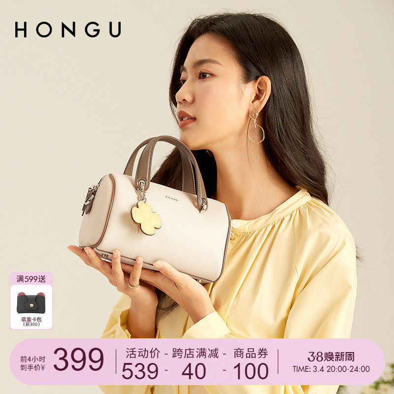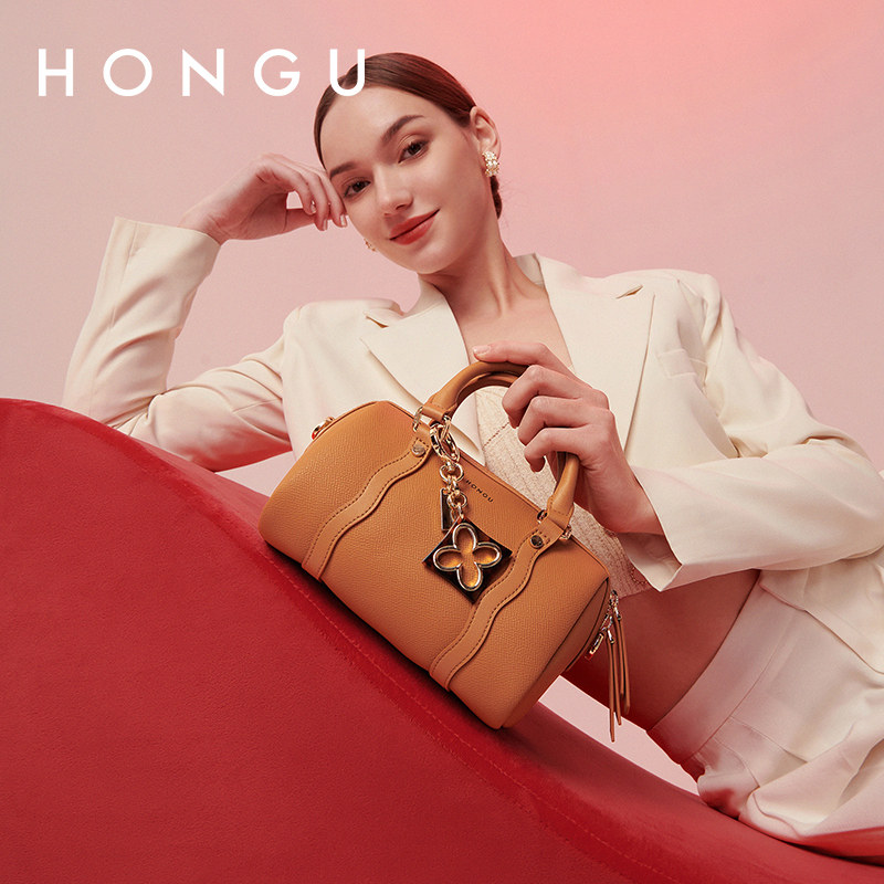 红谷包包女新款质感牛皮单肩斜挎包时尚枕头波士顿包手提女士包