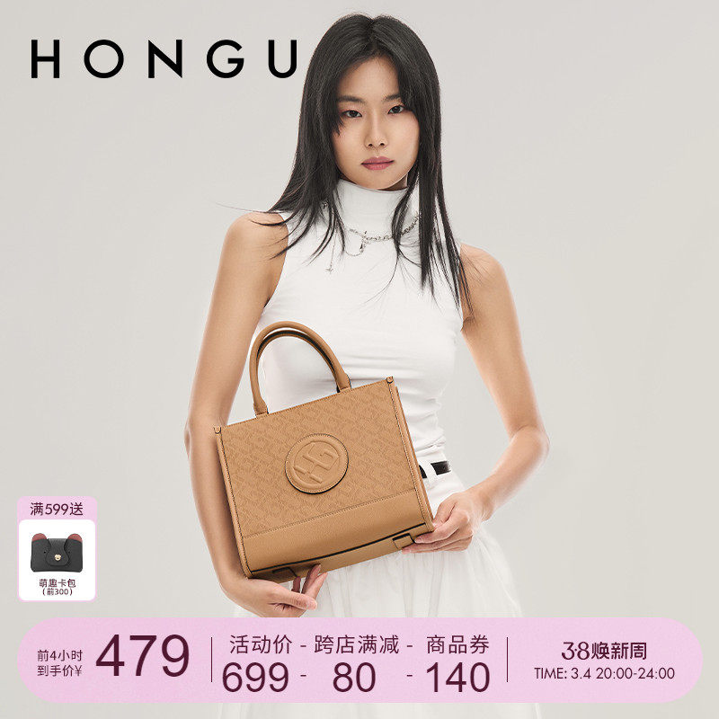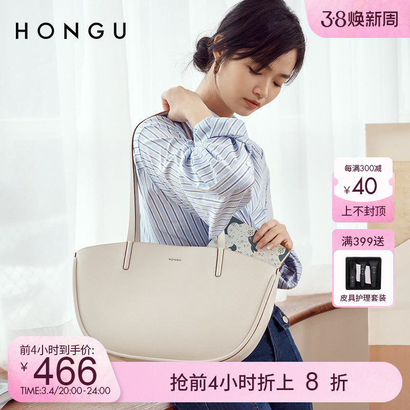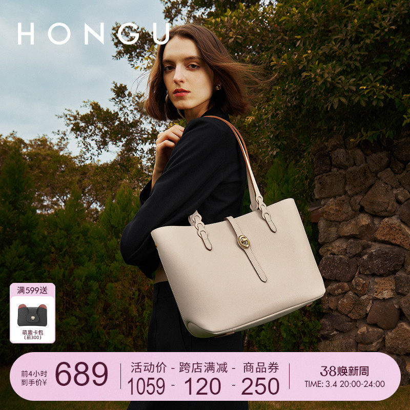 红谷包包2024新款牛皮单肩手提包休闲通勤购物大容量托特包女士包
