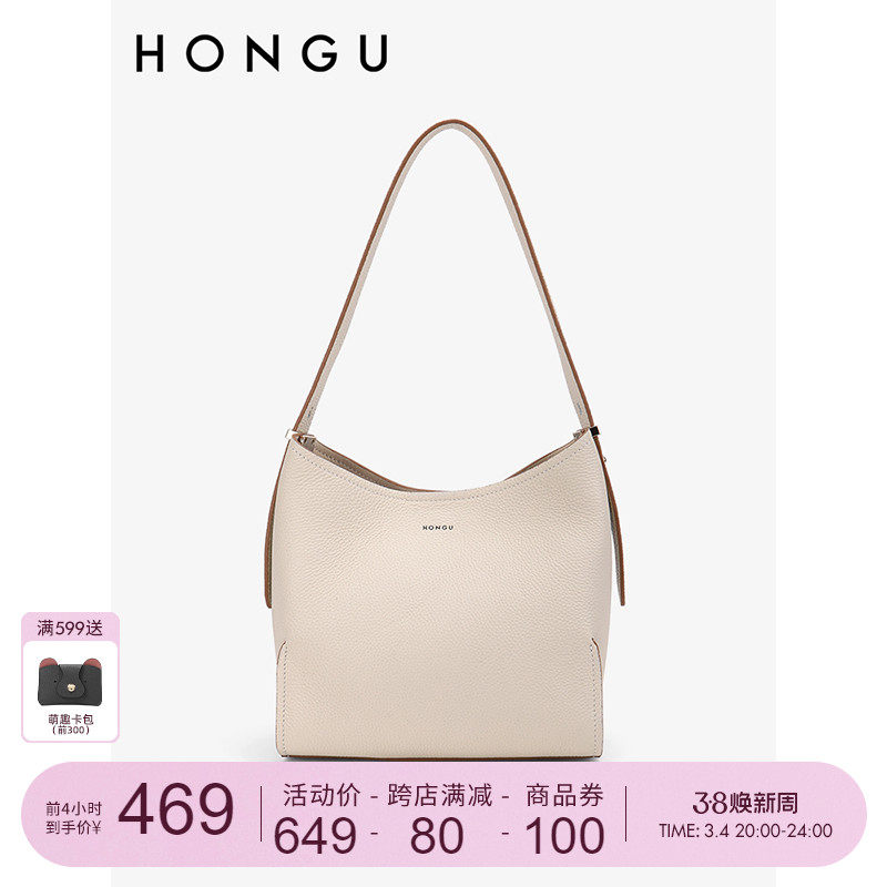 红谷包包女2023新款夏季牛皮单肩手提包通勤菜篮子包时尚斜挎女包