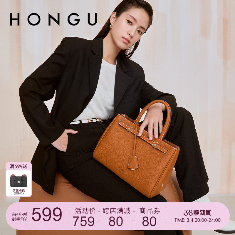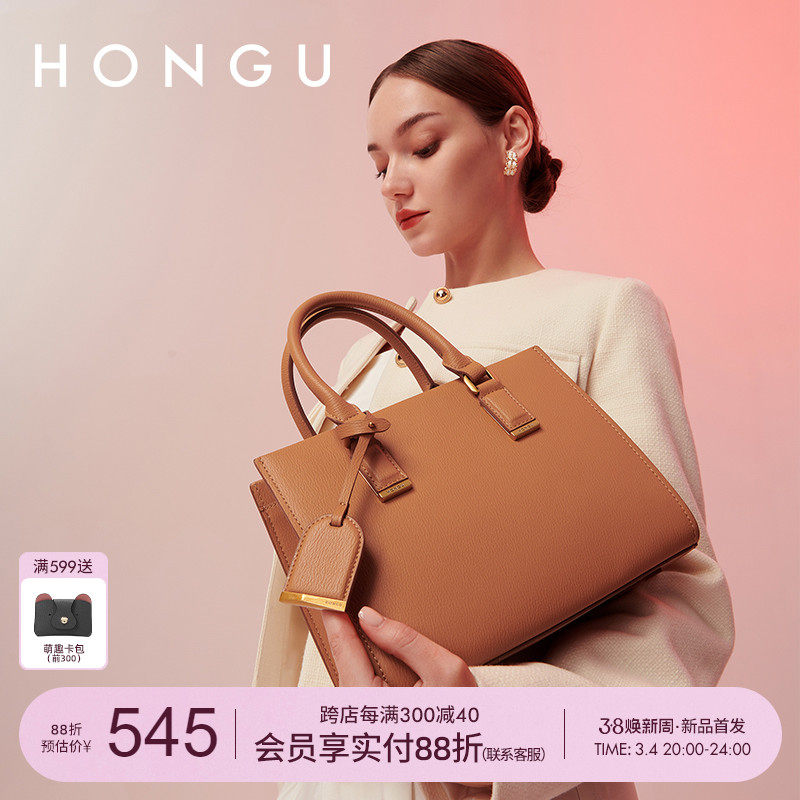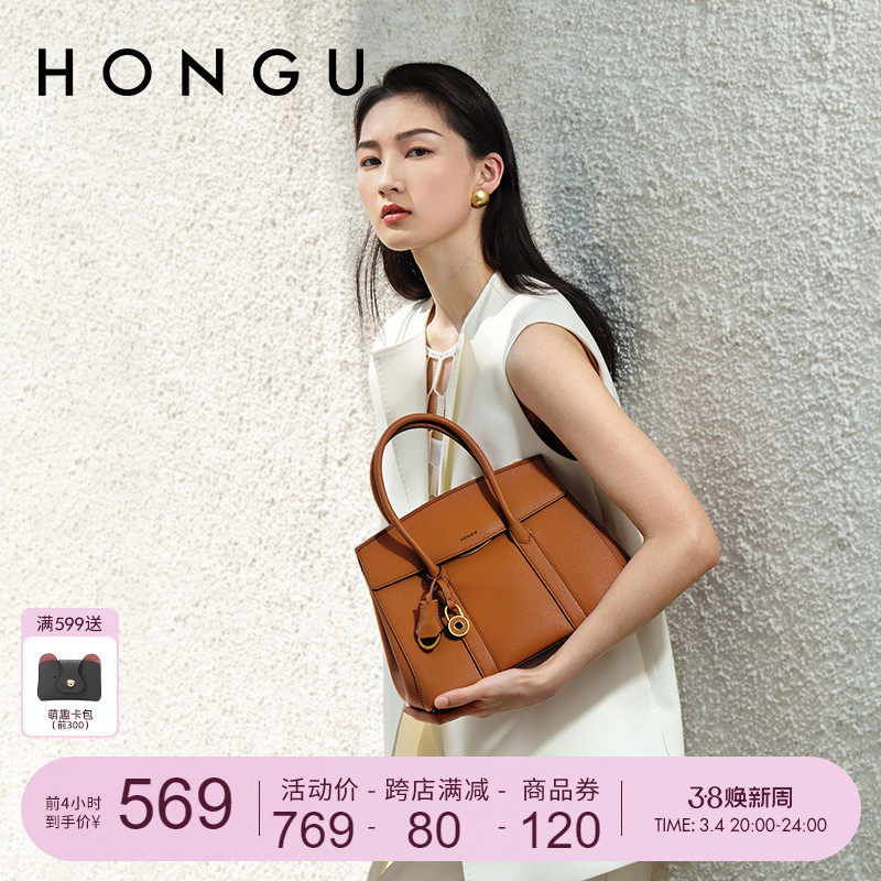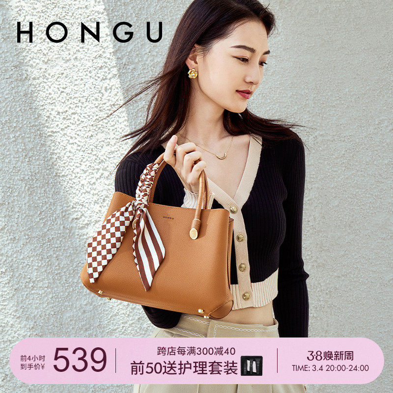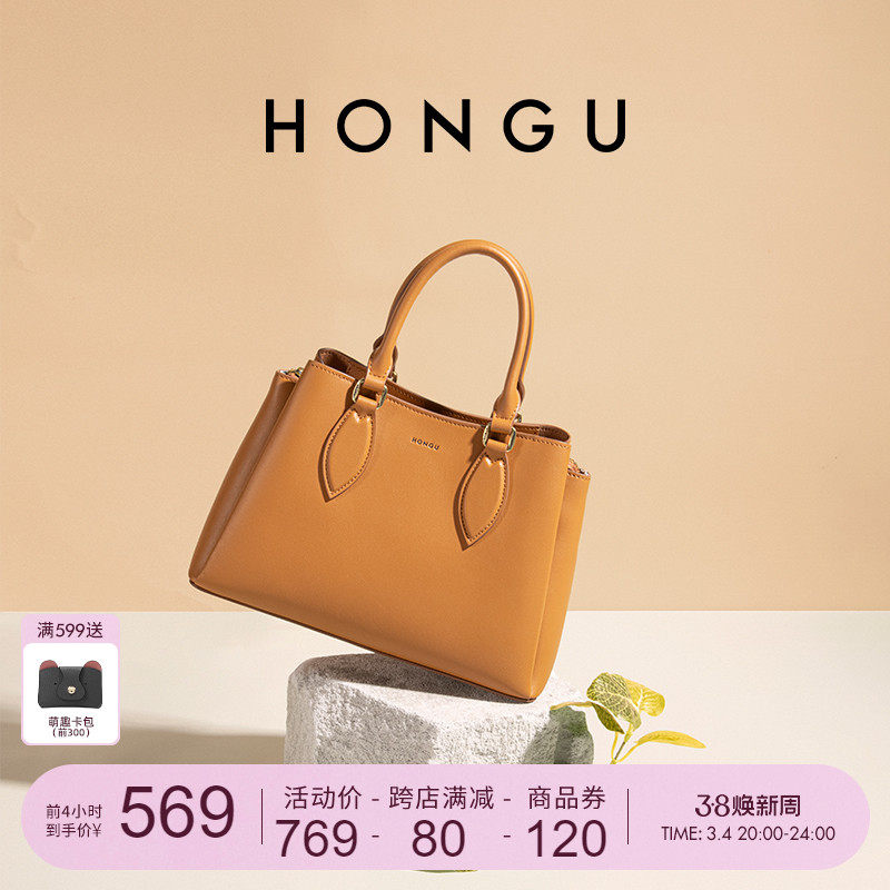 红谷包包女2023新款通勤牛皮单肩手提包高级感大容量手拎包女士包