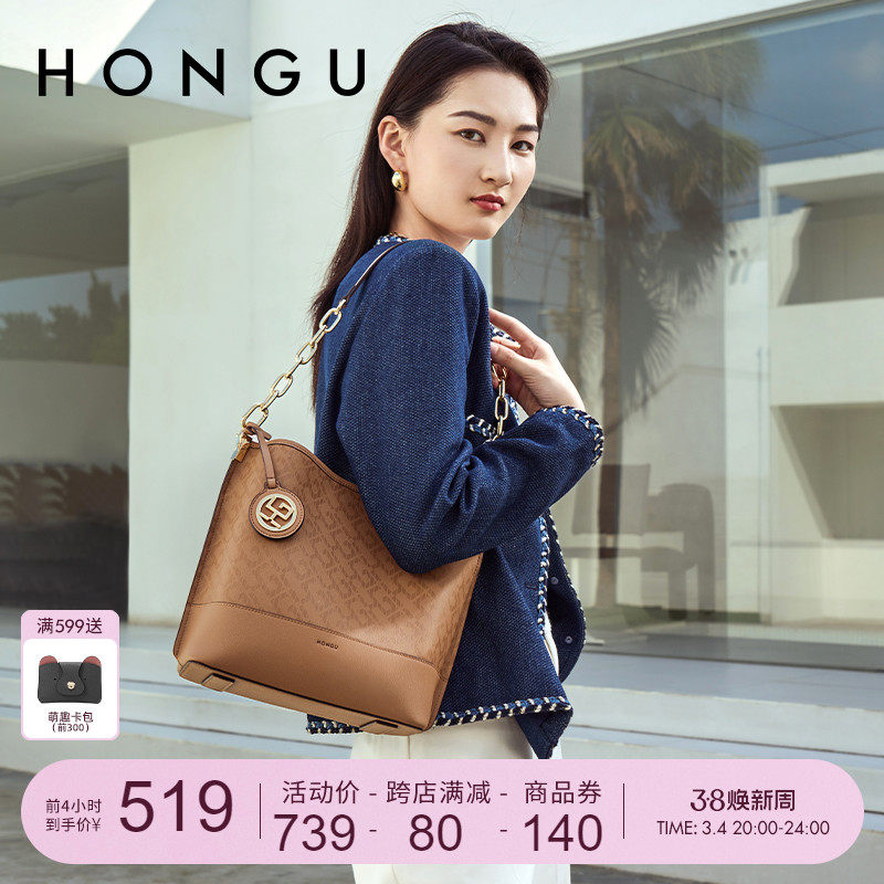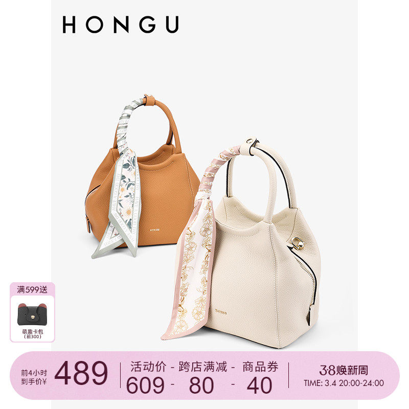 红谷包包女2024新款质感牛皮单肩手提包通勤菜篮子包时尚斜挎女包