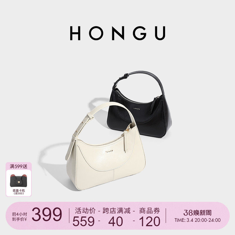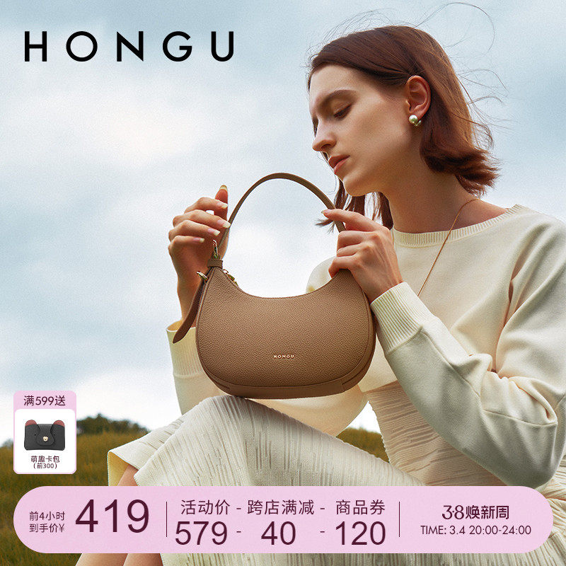 红谷包包2024新款真皮单肩腋下包今年流行月牙包高级感手提女士包