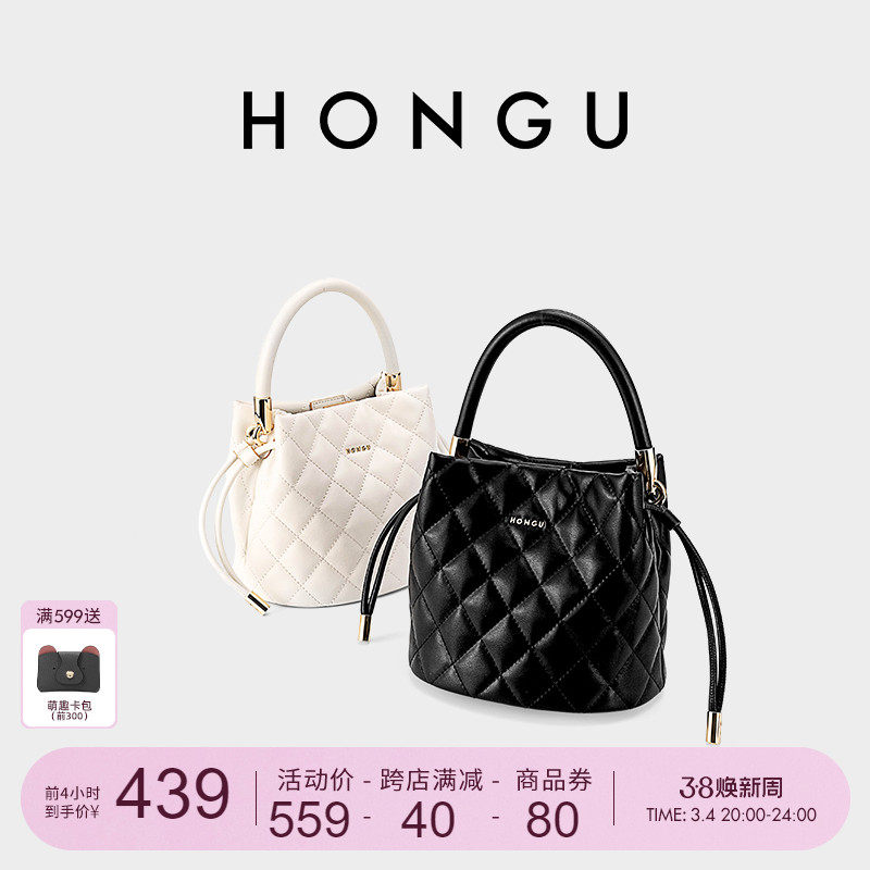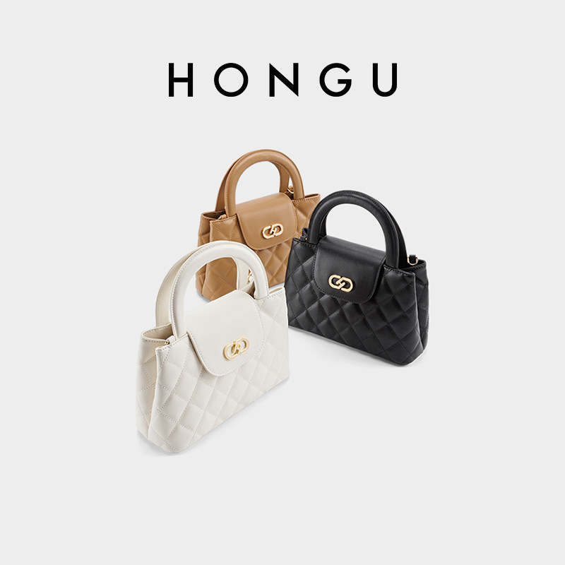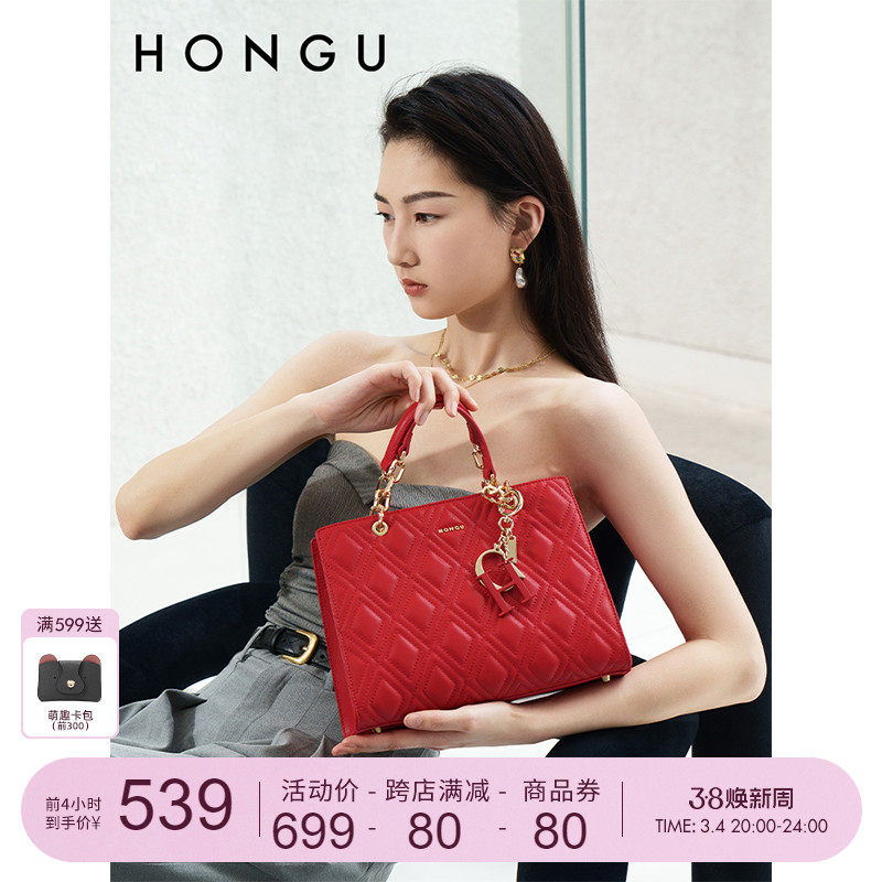红谷包包女2024新款牛皮菱格单肩手提包小众设计斜挎手拎包女士包
