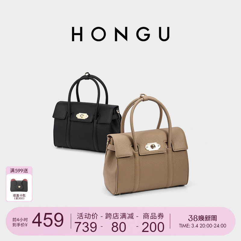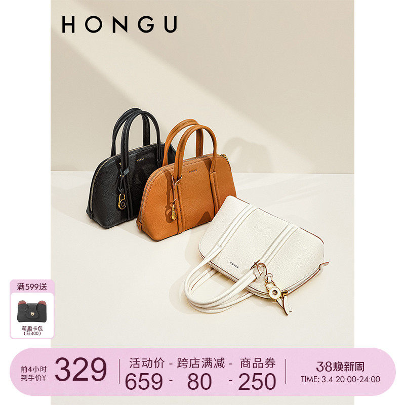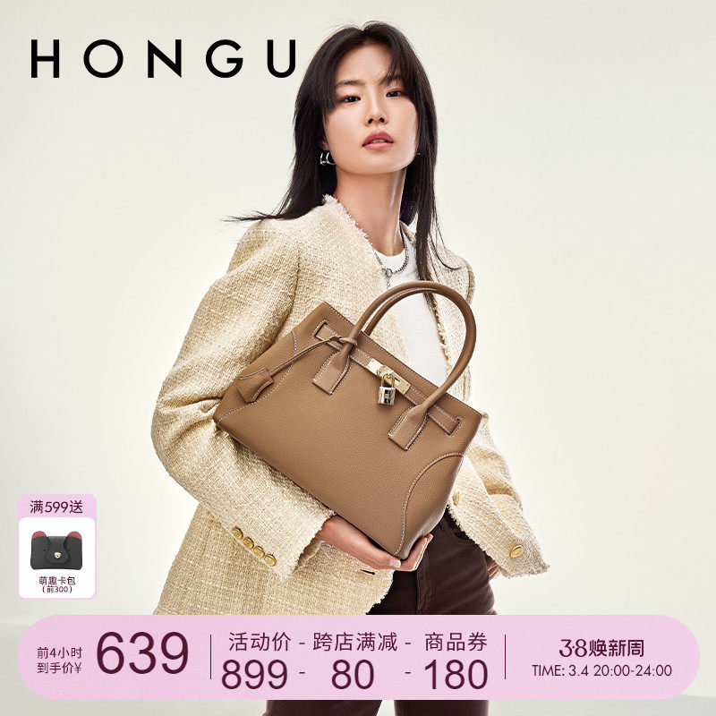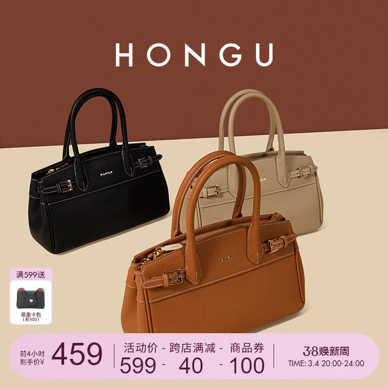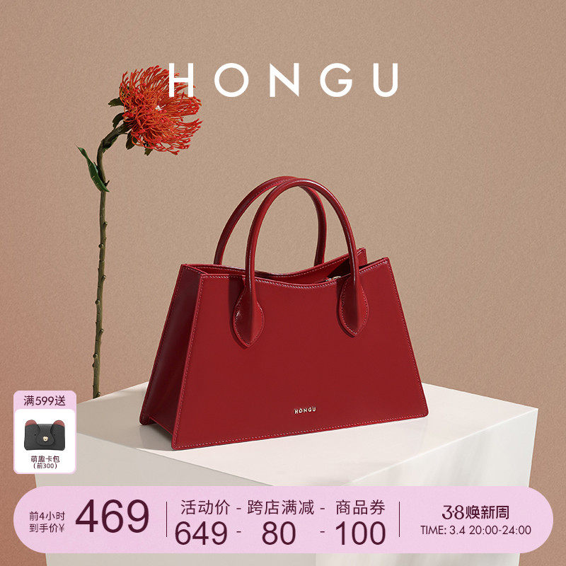 红谷包包2024新款时尚牛皮单肩手提包百搭大容量手拎包通勤女士包