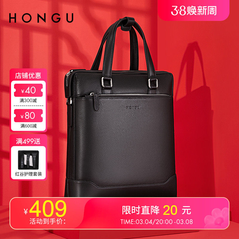 红谷男包真皮手提包男士公文包牛皮商务包休闲单肩包竖款斜挎包