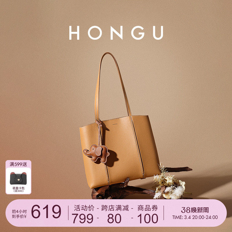 红谷包包女2023新款气质休闲单肩女包大容量牛皮手提包托特包3164