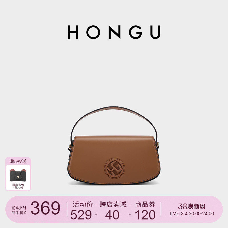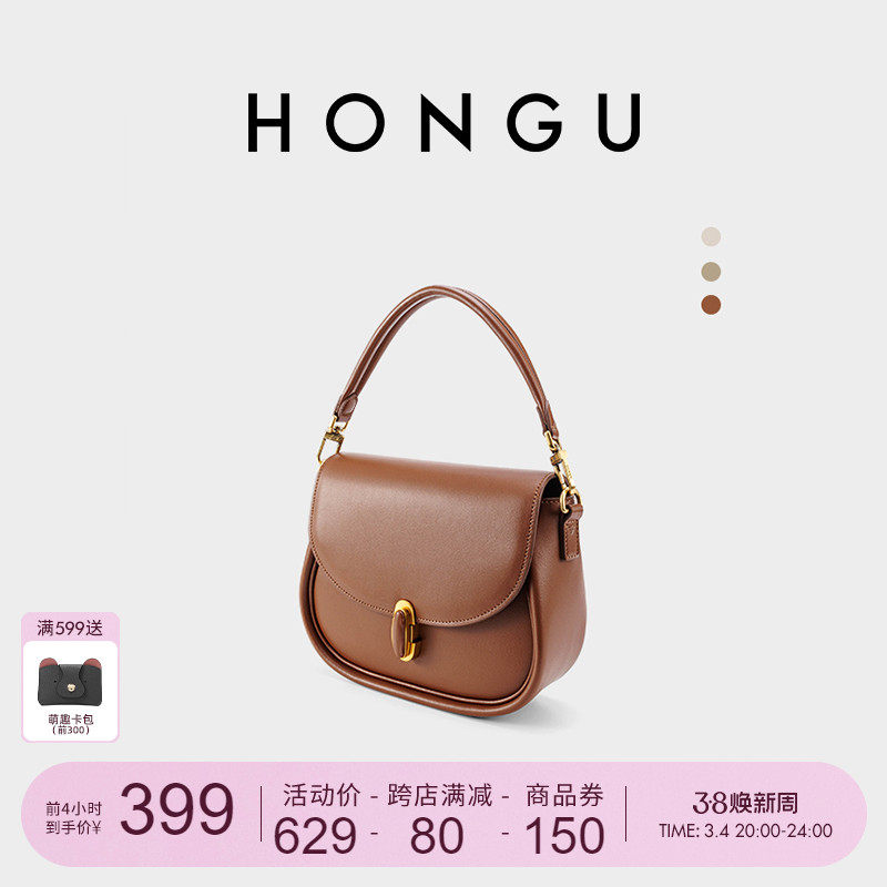 红谷包包2024新款牛皮单肩斜挎包时尚复古马鞍包休闲手提小包女包