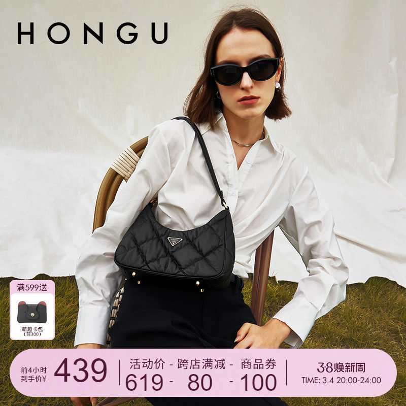 红谷包包2023新款真皮单肩腋下包时尚菱格高级感月牙包手提女士包