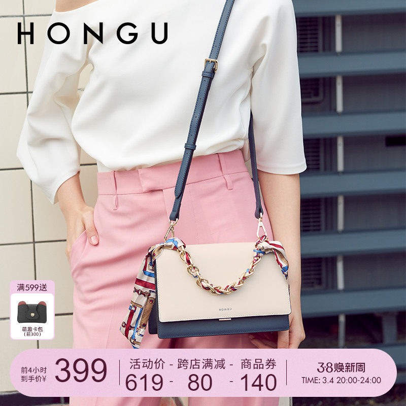 红谷包包气质女包牛皮斜挎包女士单肩包链条手提包时尚小方包小包