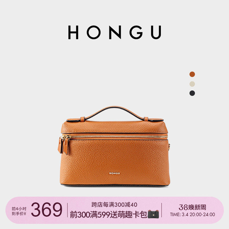 红谷包包女2023新款时尚真皮单肩手提包小众设计斜挎盒子包化妆包