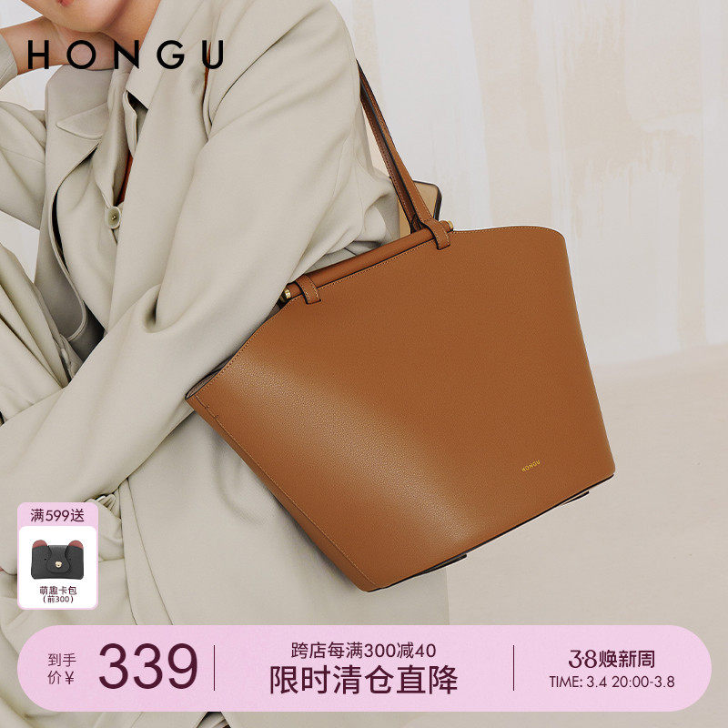 红谷包包秋冬新款牛皮单肩手提包小众设计大容量时尚托特包女士包