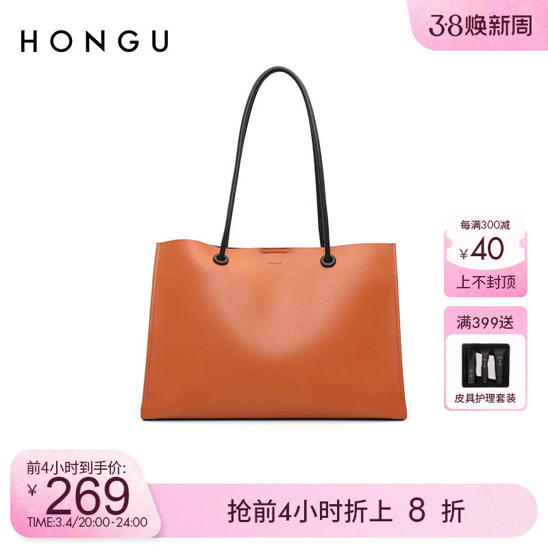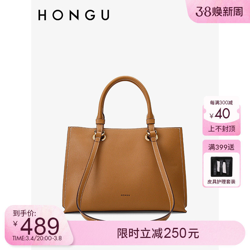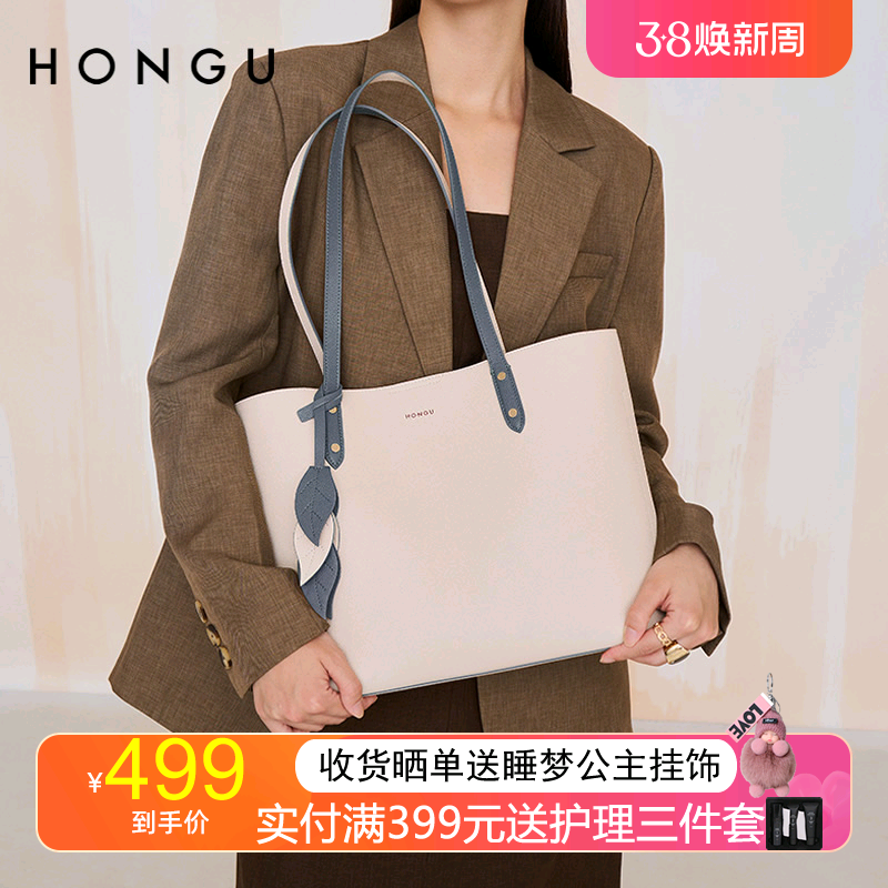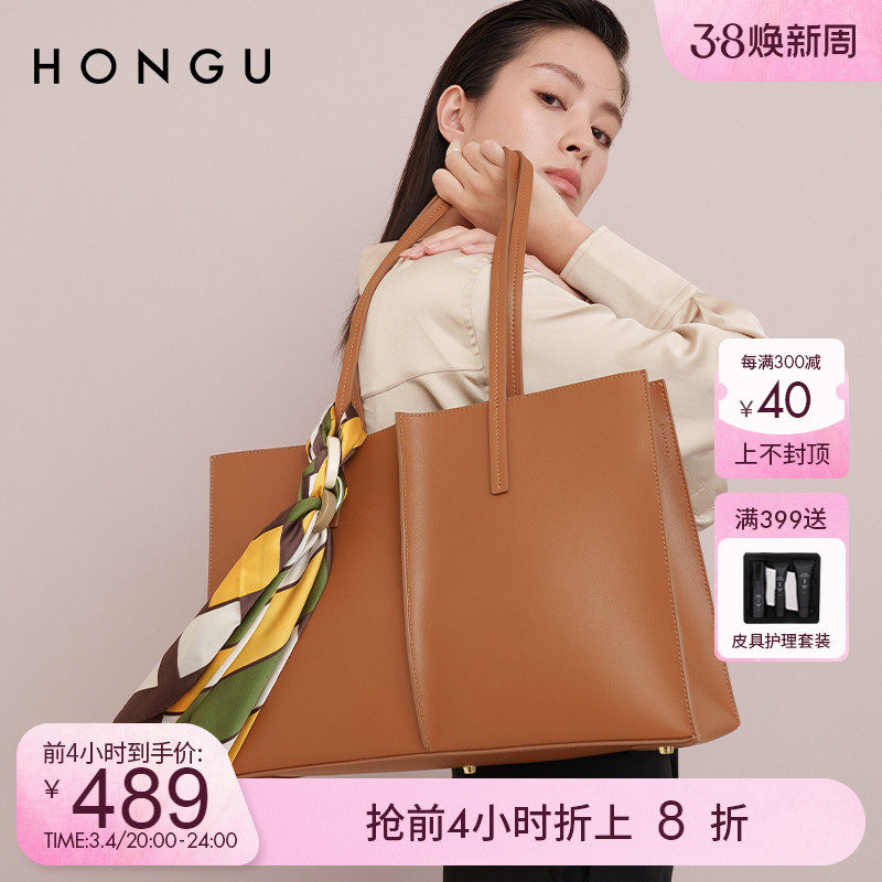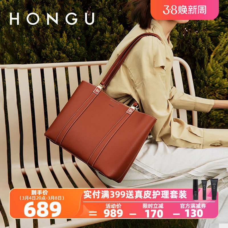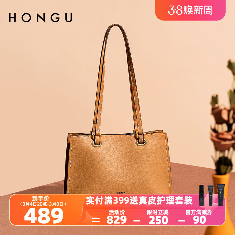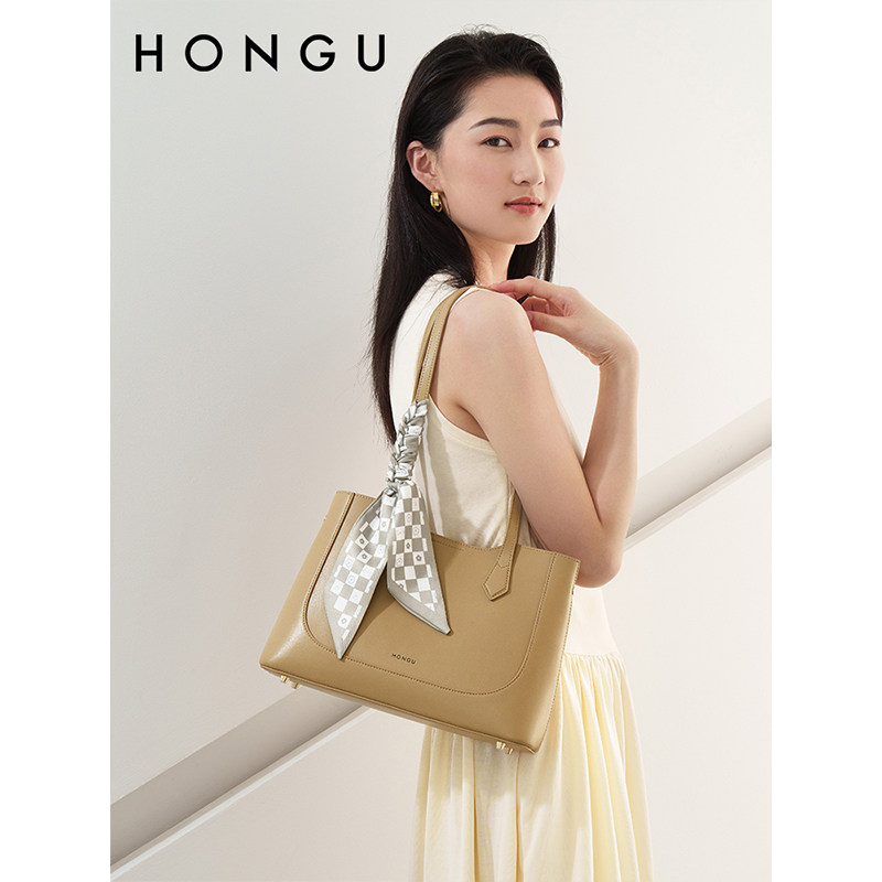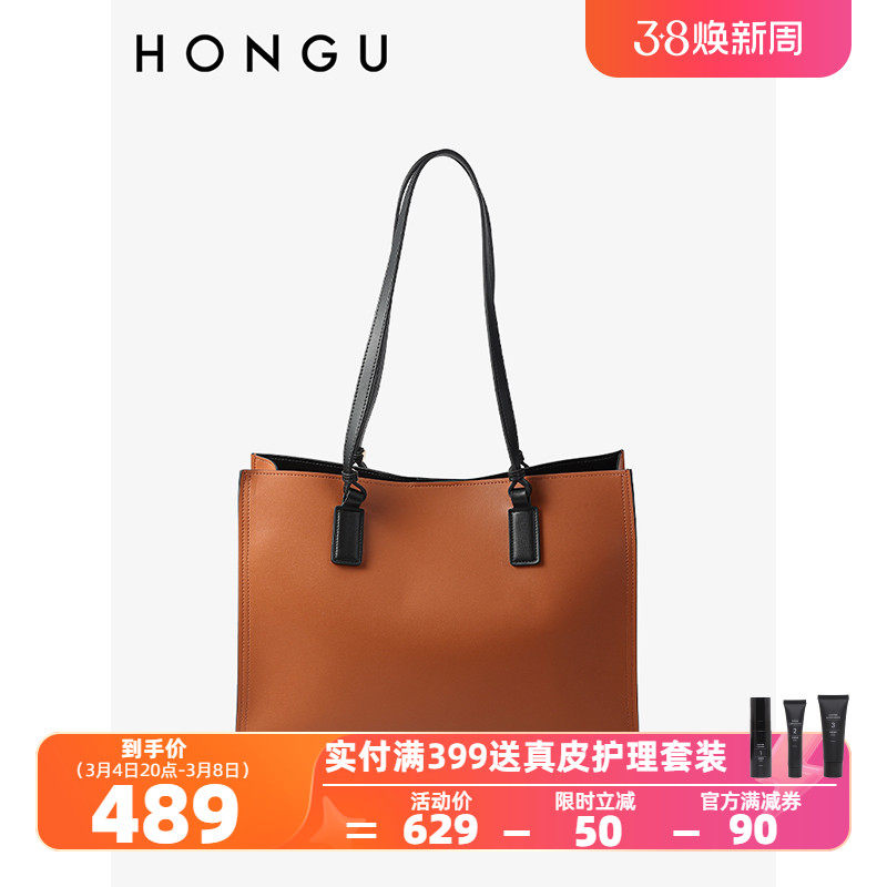 HONGU/红谷托特包女大容量小众设计手提单肩斜挎通勤大包真皮百搭