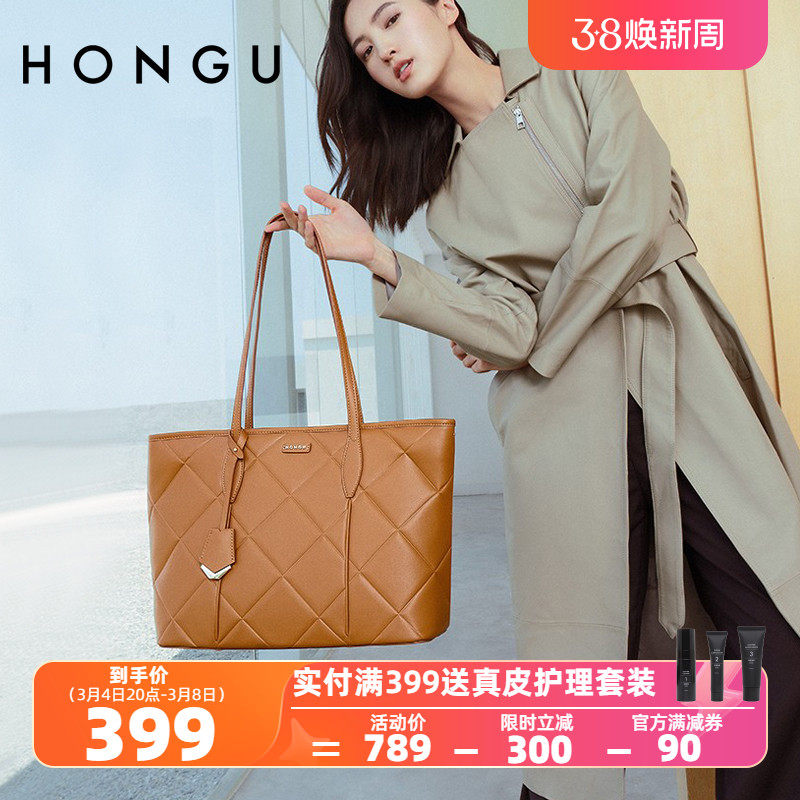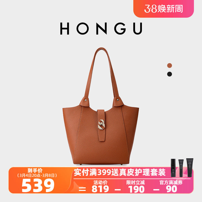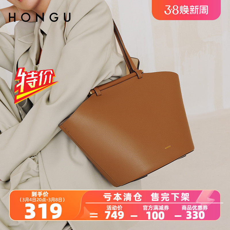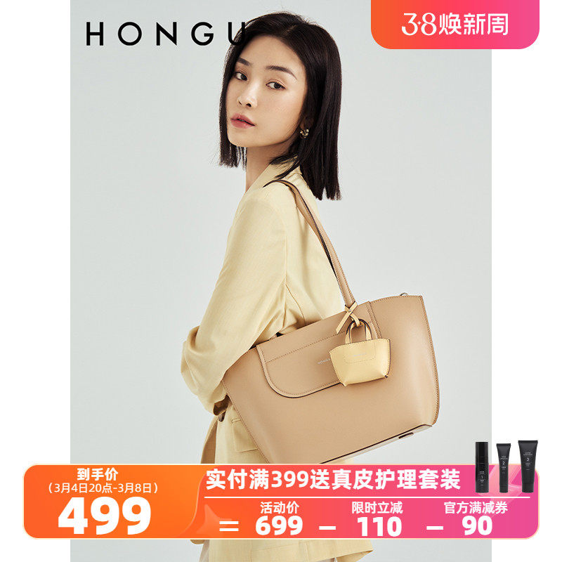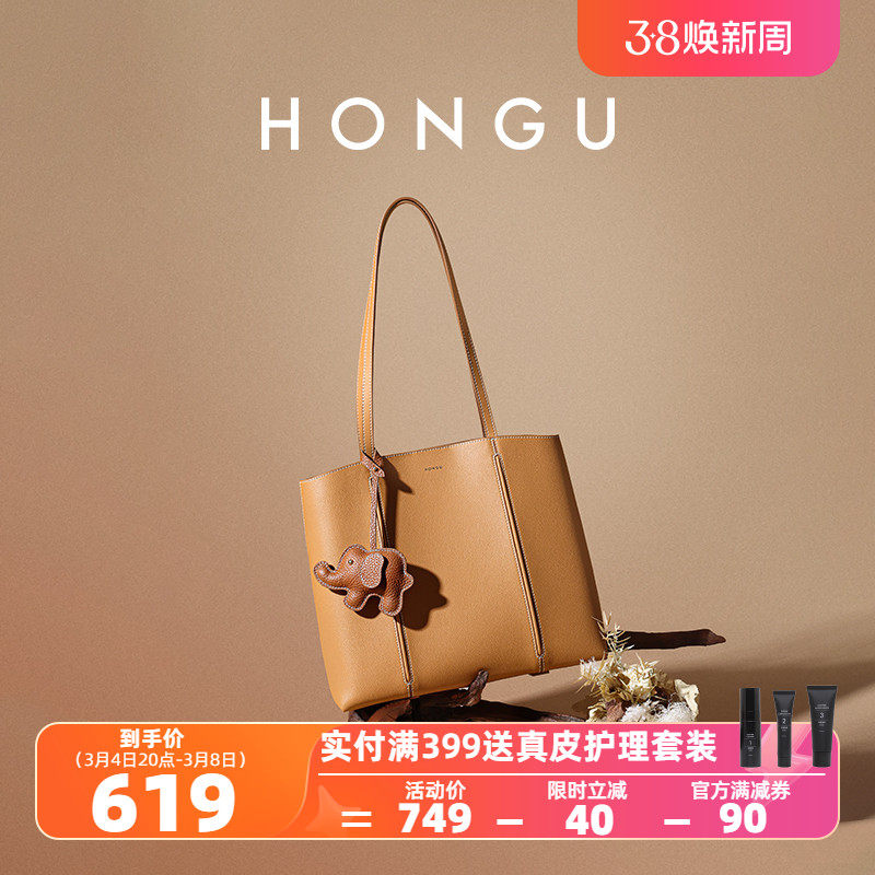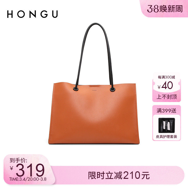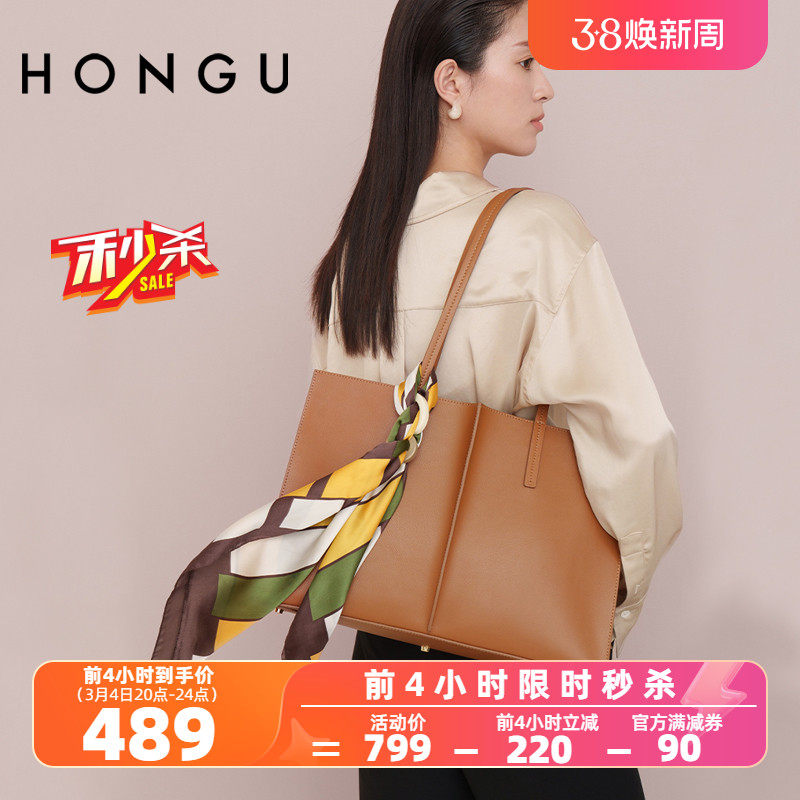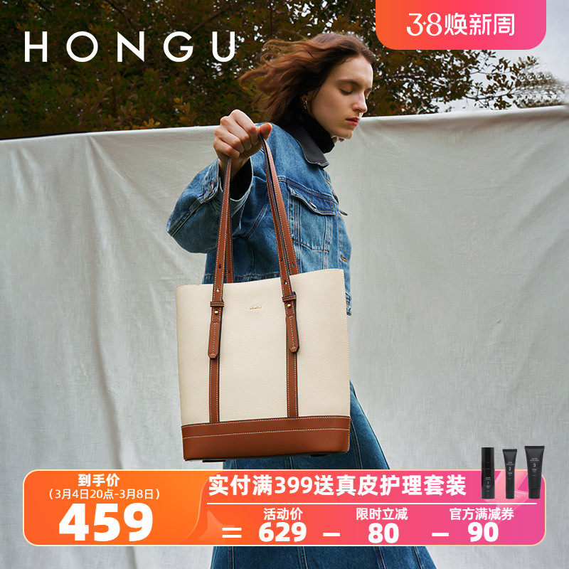 HONGU/红谷托特包女大容量小众设计手提单肩斜挎通勤大包真皮百搭