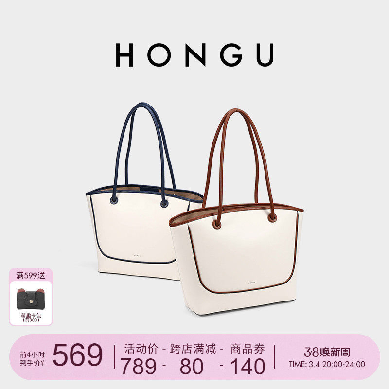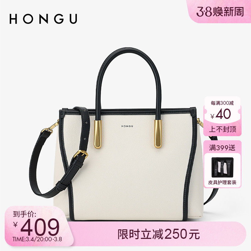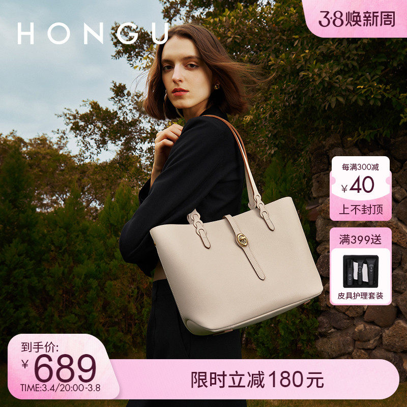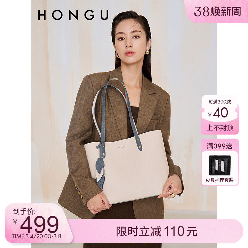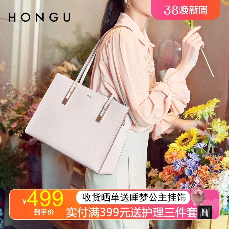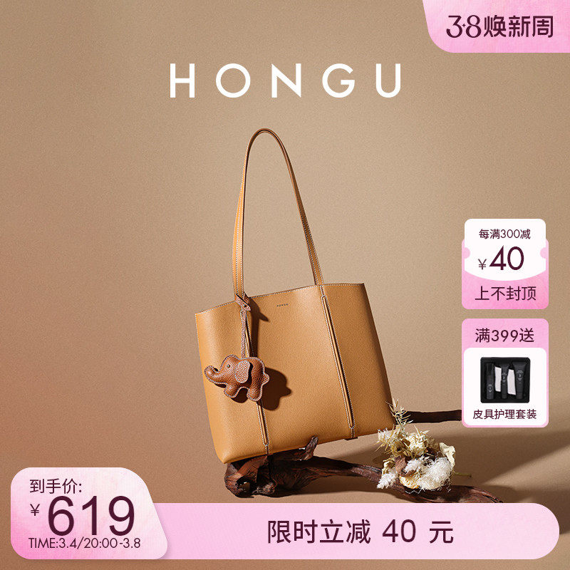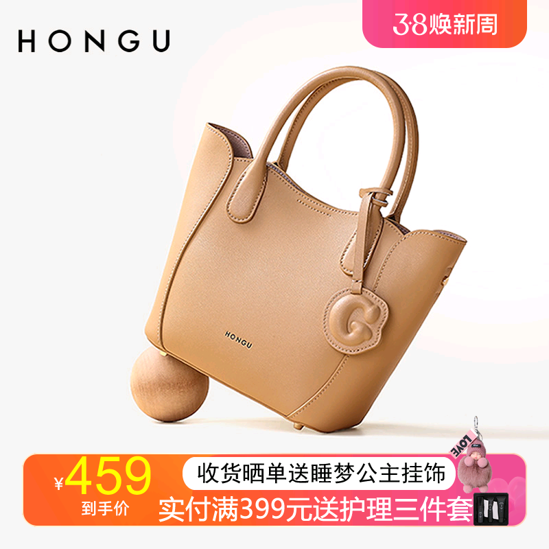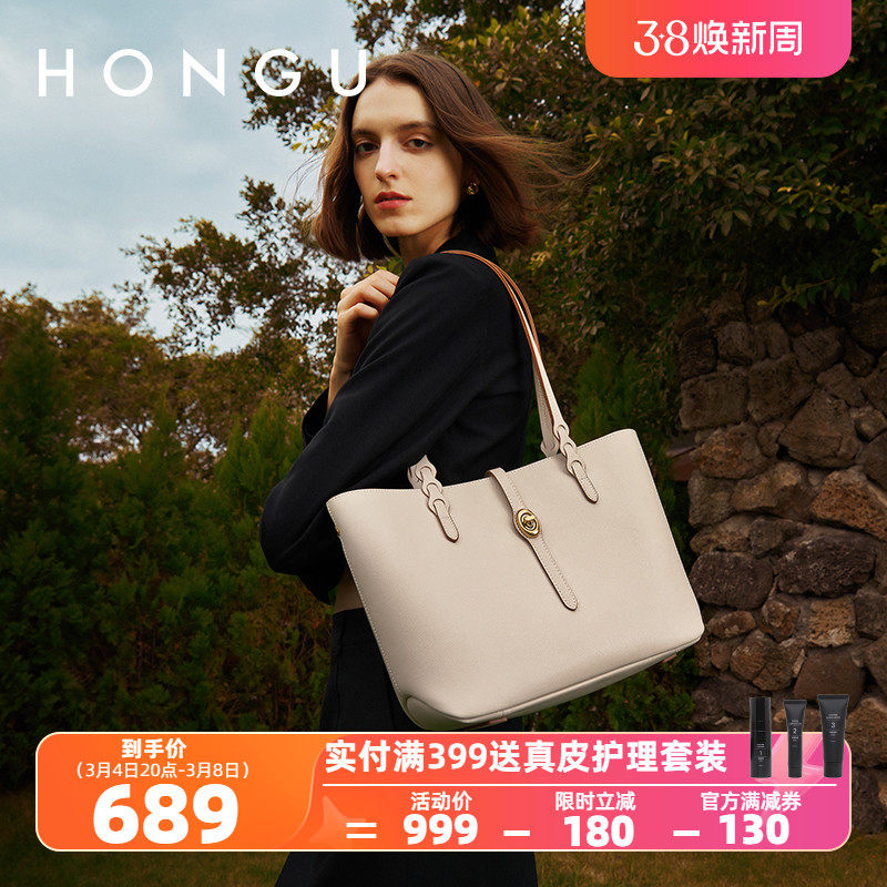 HONGU/红谷托特包女大容量小众设计手提单肩斜挎通勤大包真皮百搭