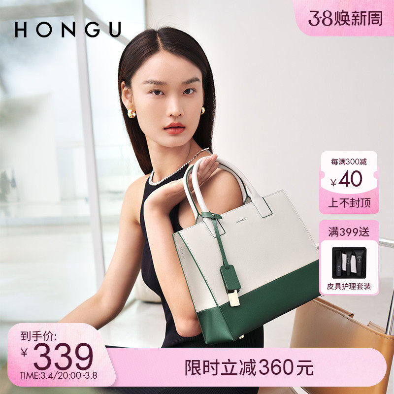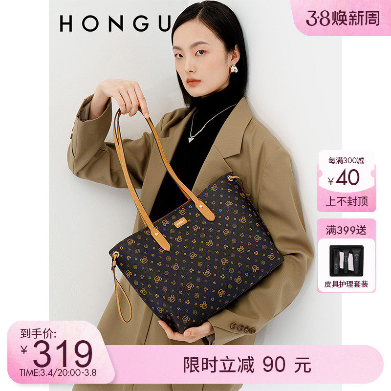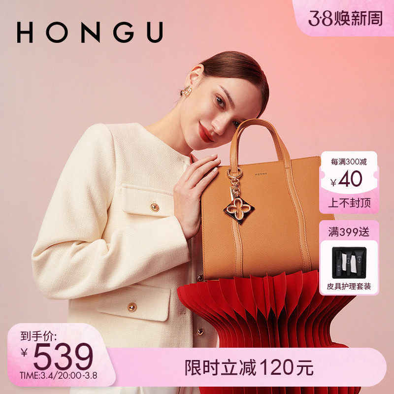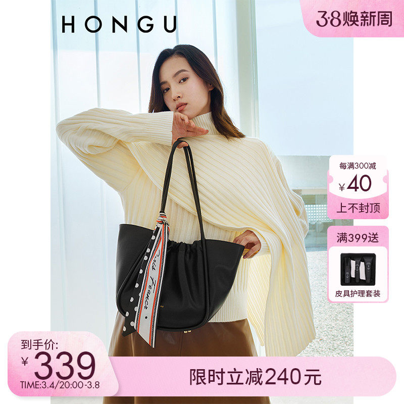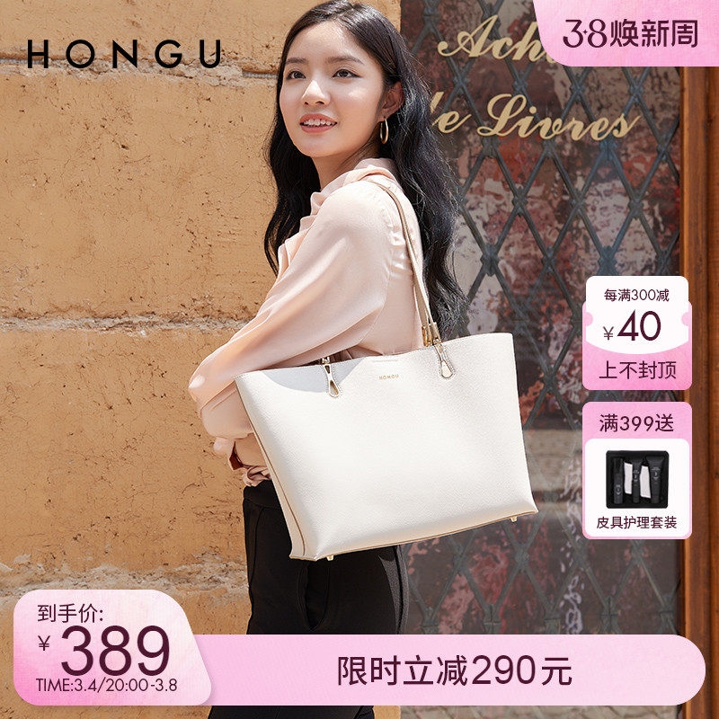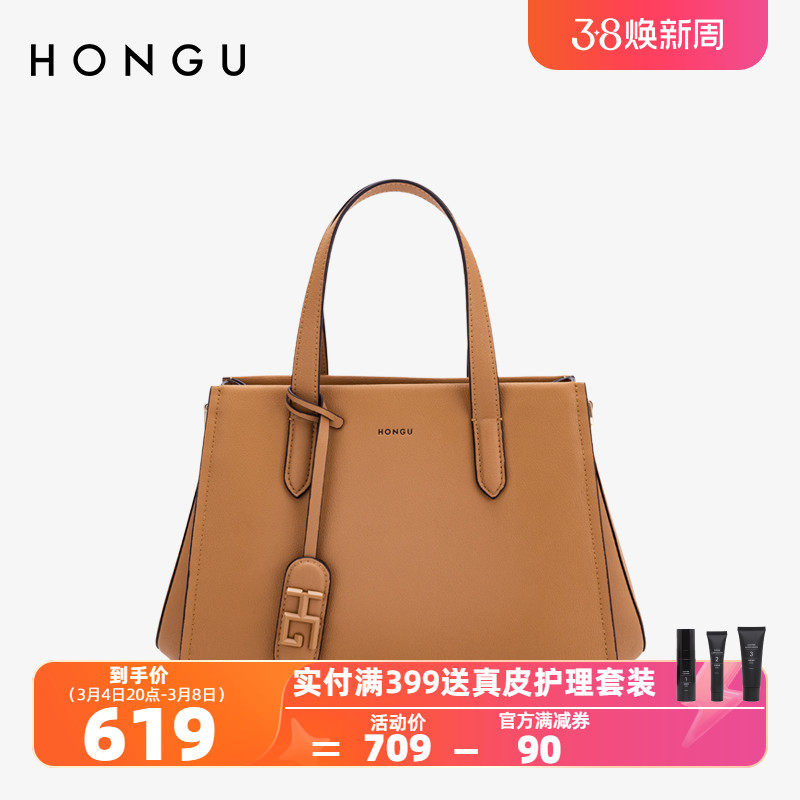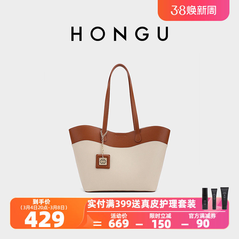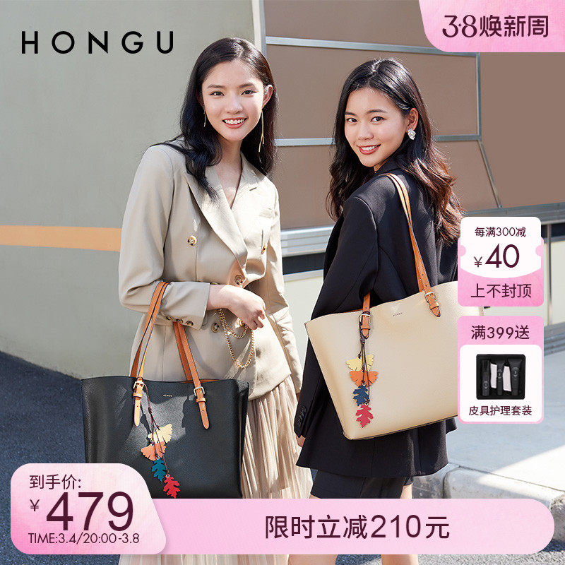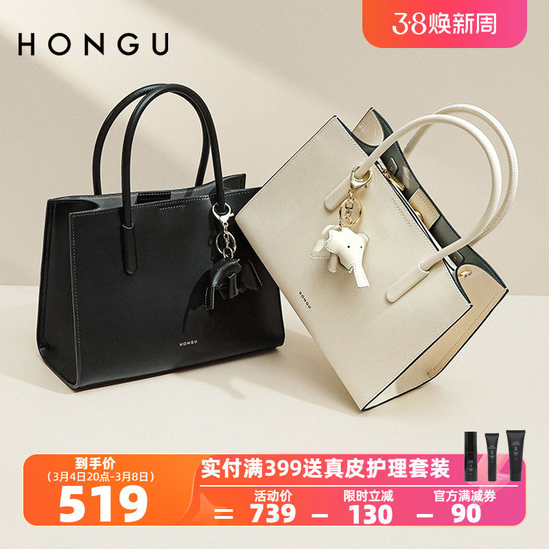 HONGU/红谷托特包女大容量小众设计手提单肩斜挎通勤大包真皮百搭