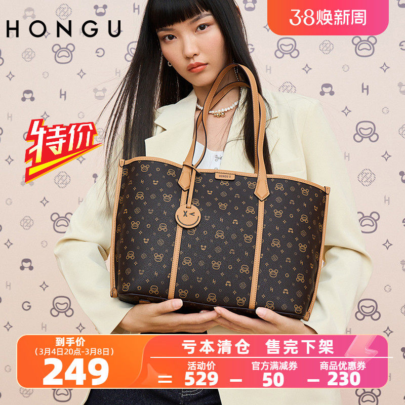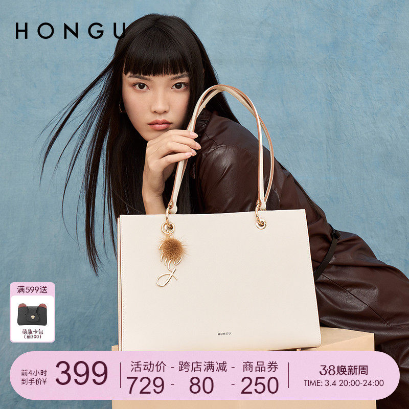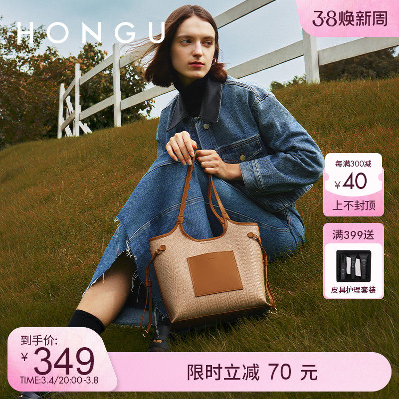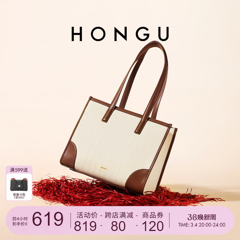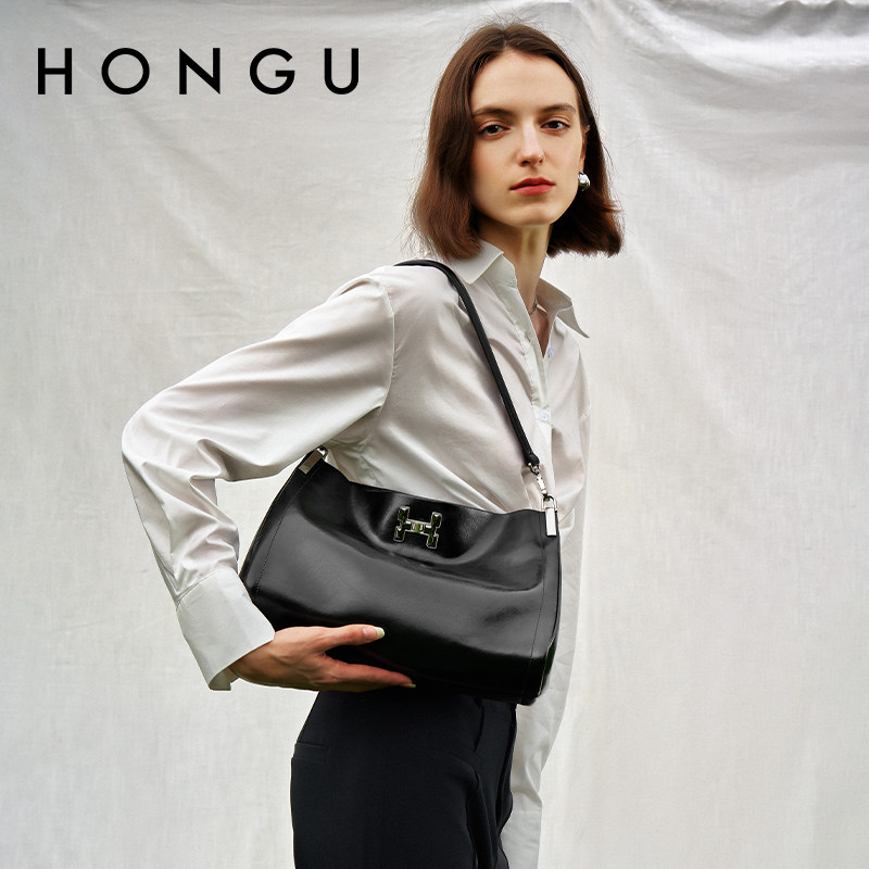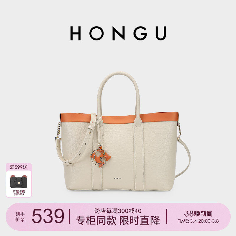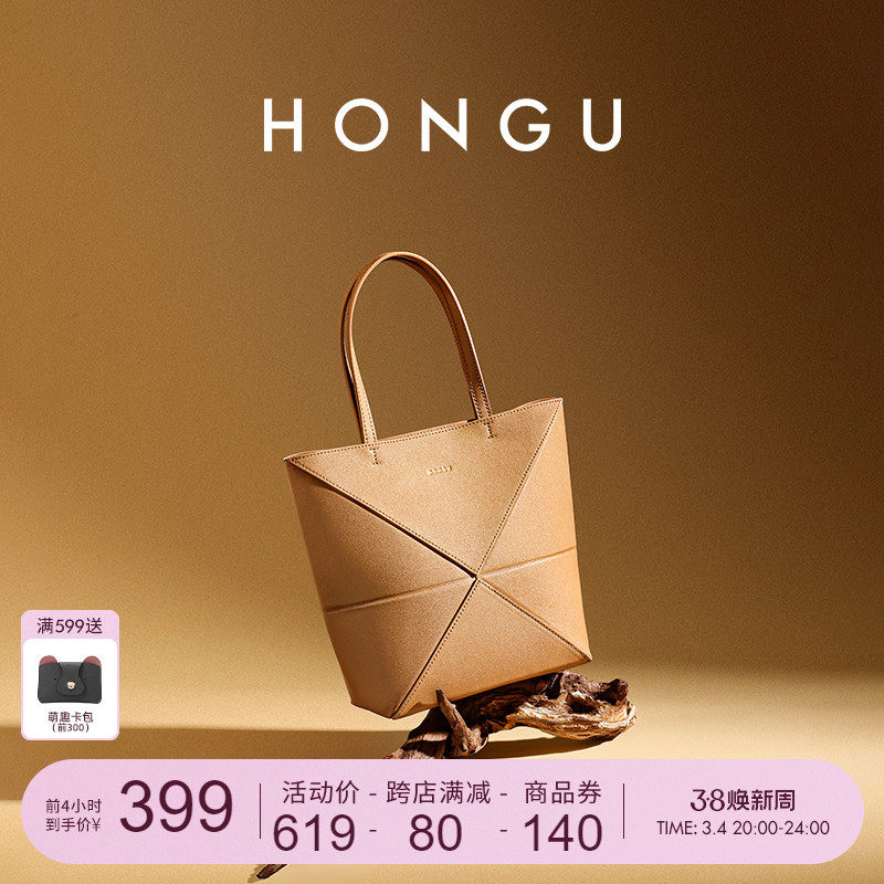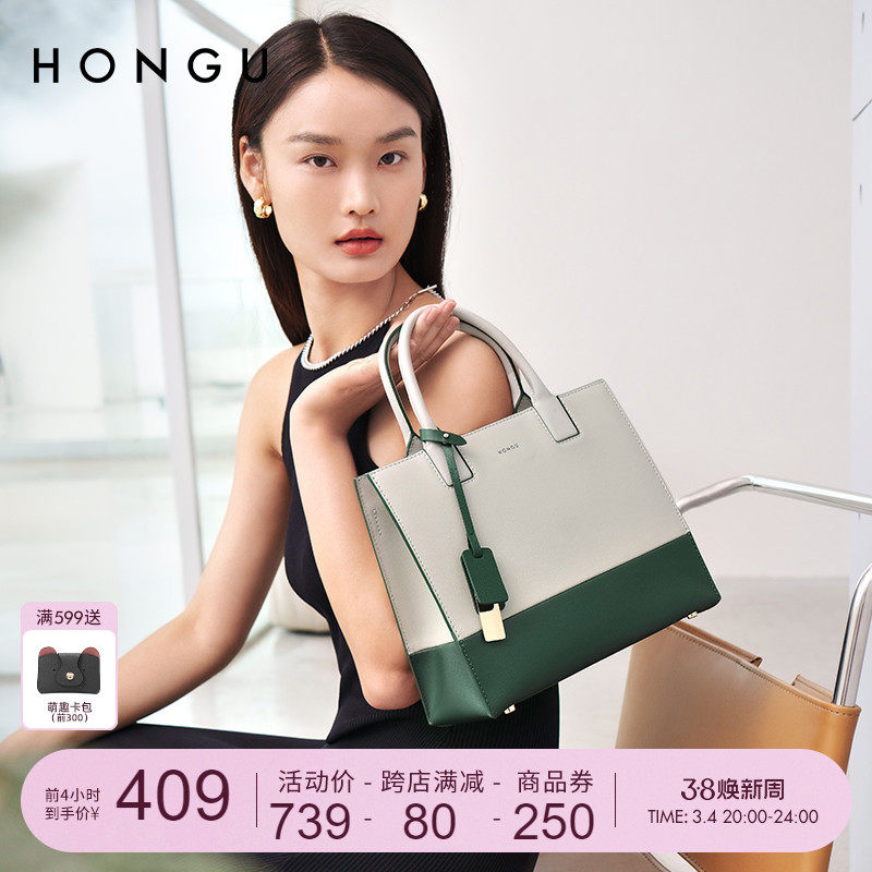 HONGU/红谷托特包女大容量小众设计手提单肩斜挎通勤大包真皮百搭
