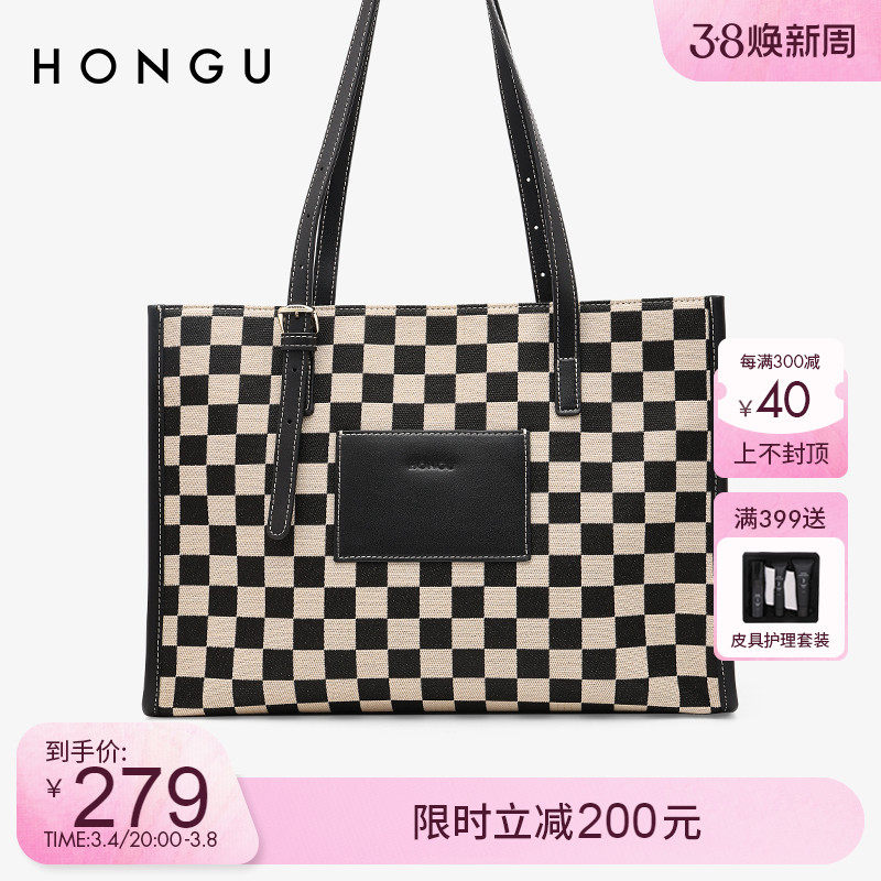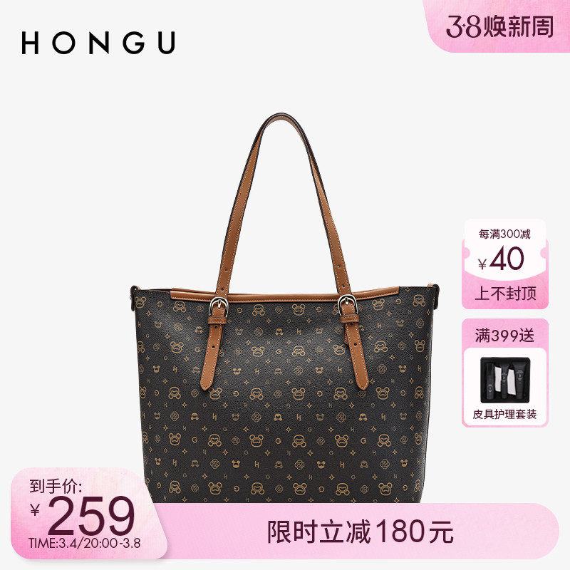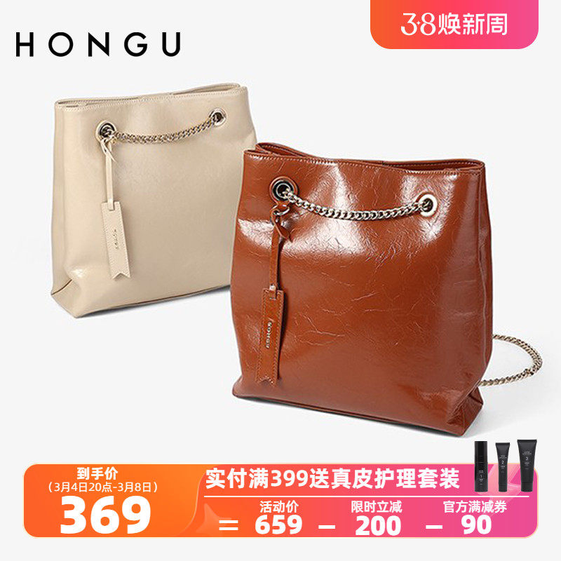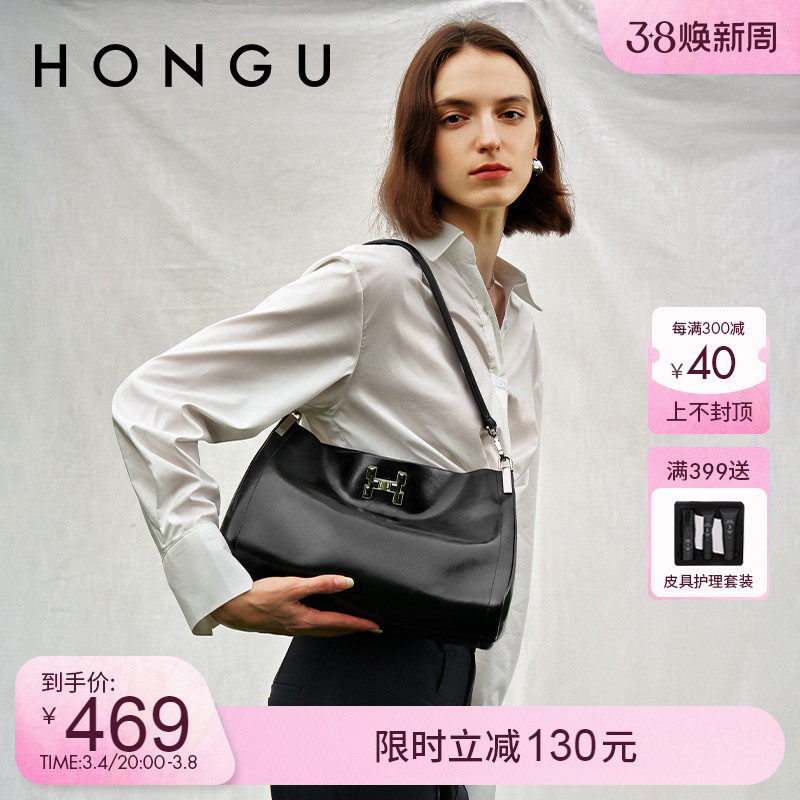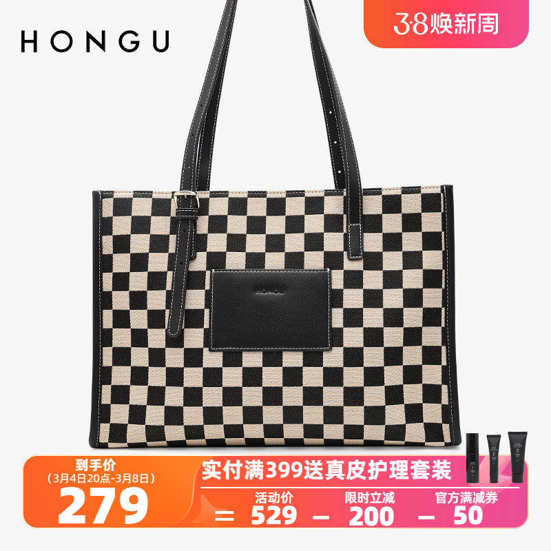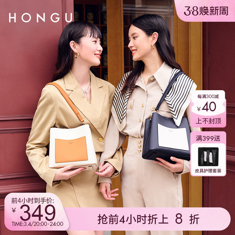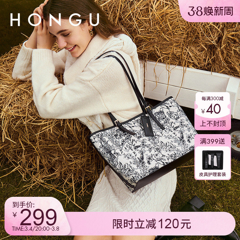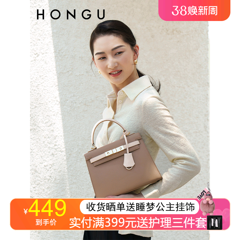 HONGU/红谷托特包女大容量小众设计手提单肩斜挎通勤大包真皮百搭
