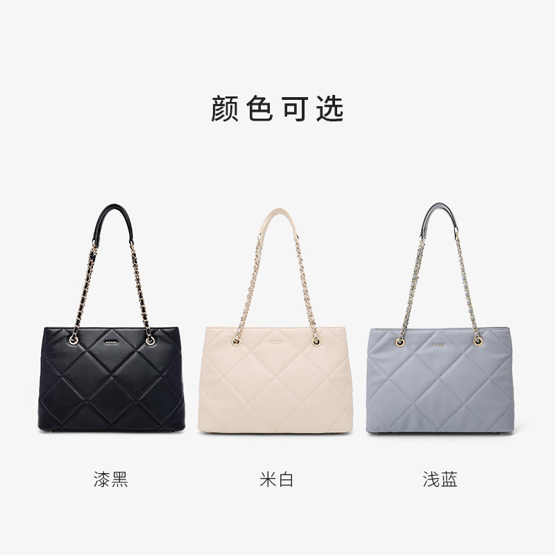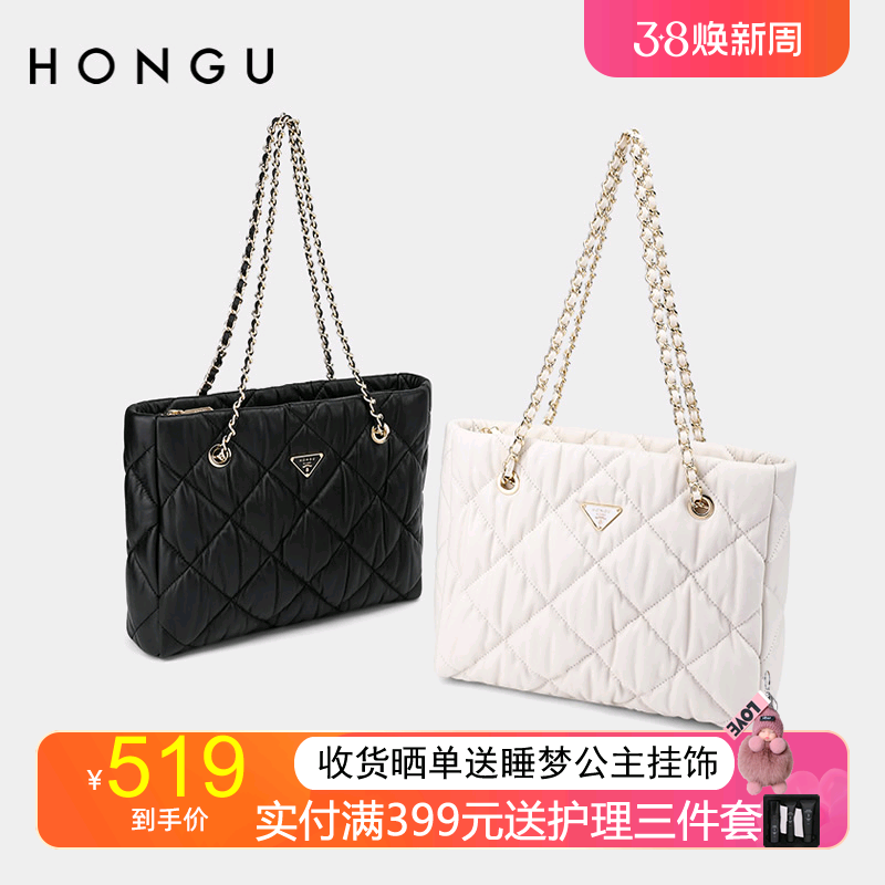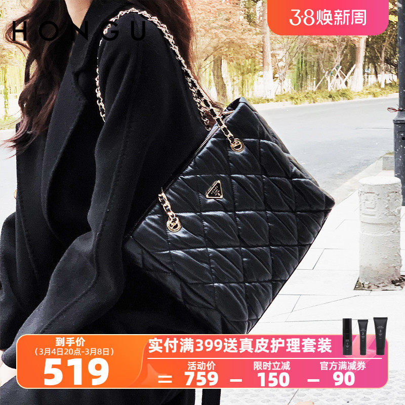 红谷包包新款秋冬菱格牛皮单肩手提包通勤购物大容量托特包女士包