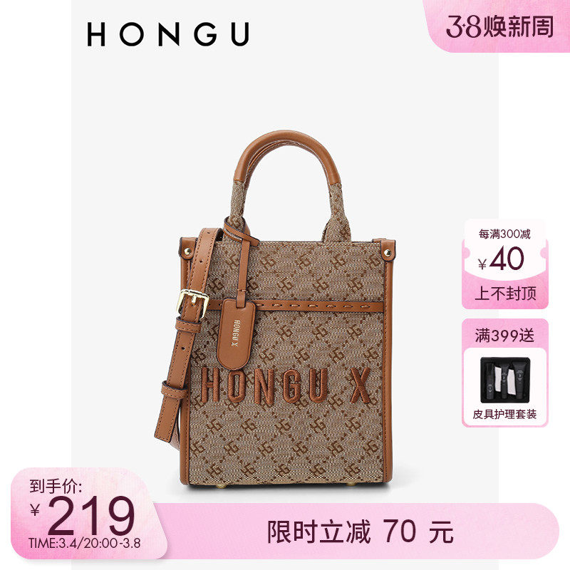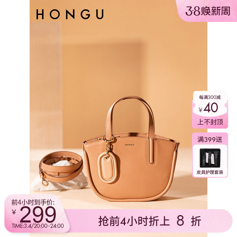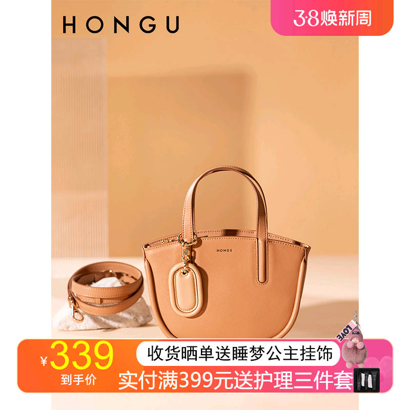 HONGU红谷女包新款小众设计编织手提单肩斜挎迷你托特水桶手机包