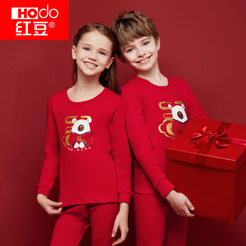 红豆居家儿童本命年内衣套装女童大红色纯棉秋衣秋裤女孩线衣线裤
