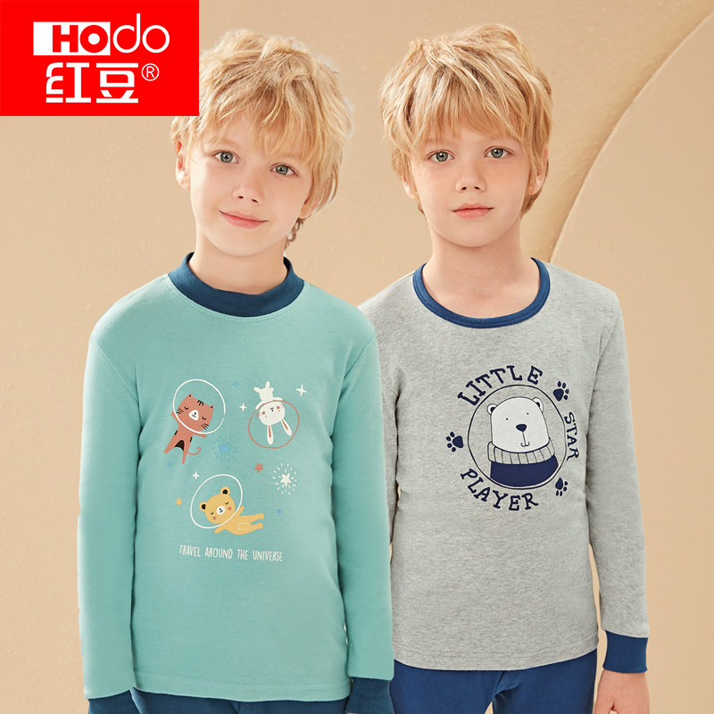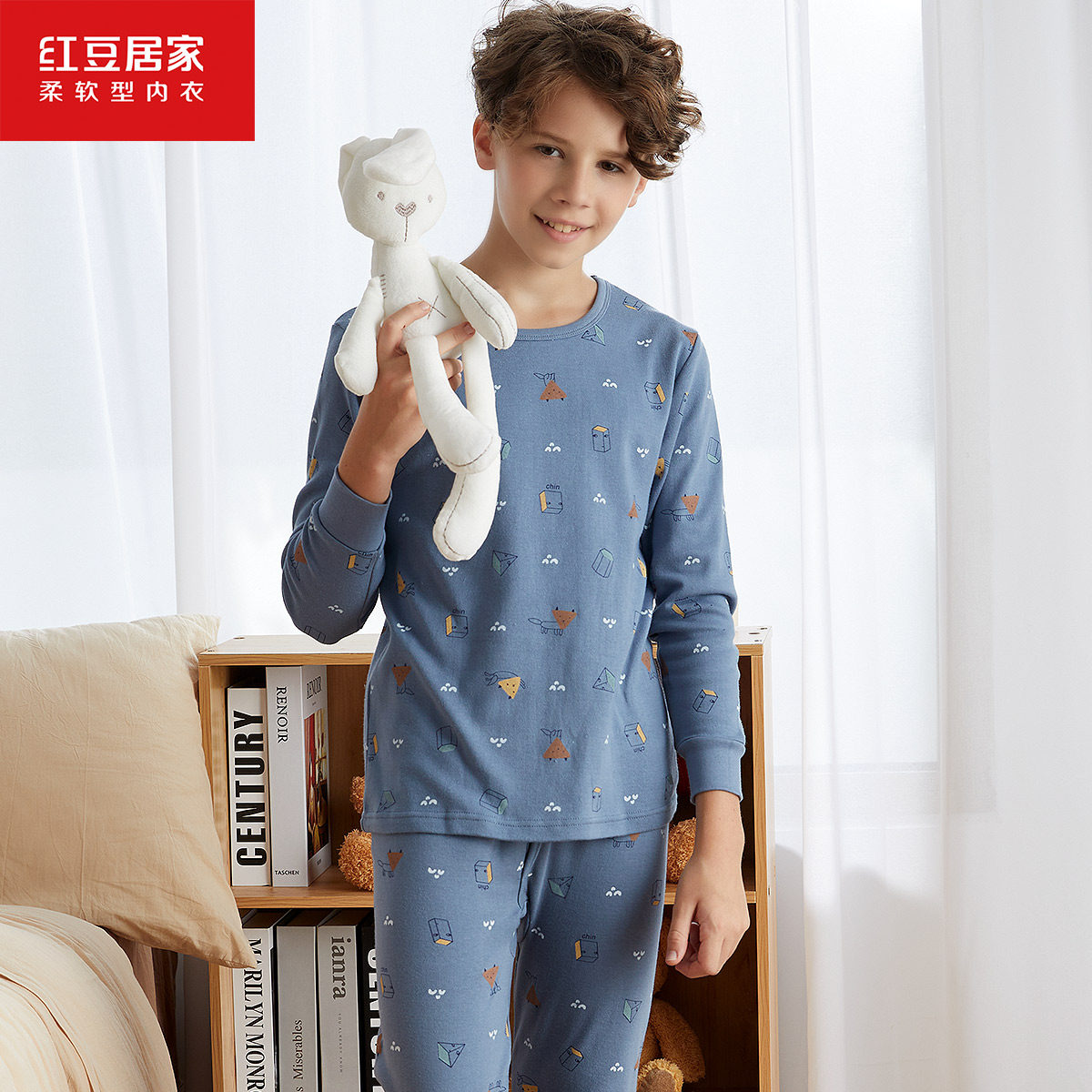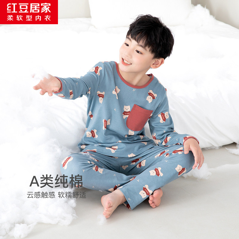 红豆居家宝宝全棉毛衫睡衣男童保暖大童秋衣秋裤儿童内衣套装纯棉