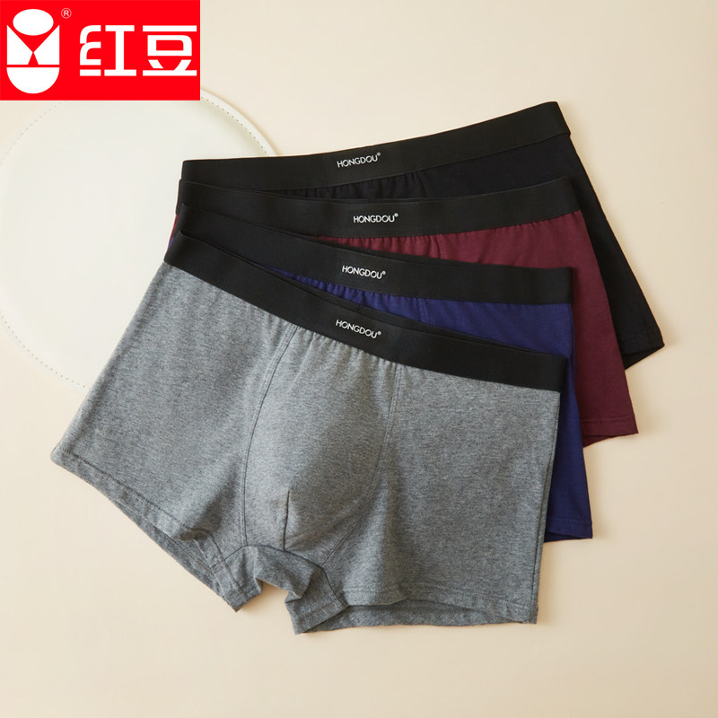 红豆居家男士内裤男100%纯棉宽松弹力透气四角裤头青少年平角短裤