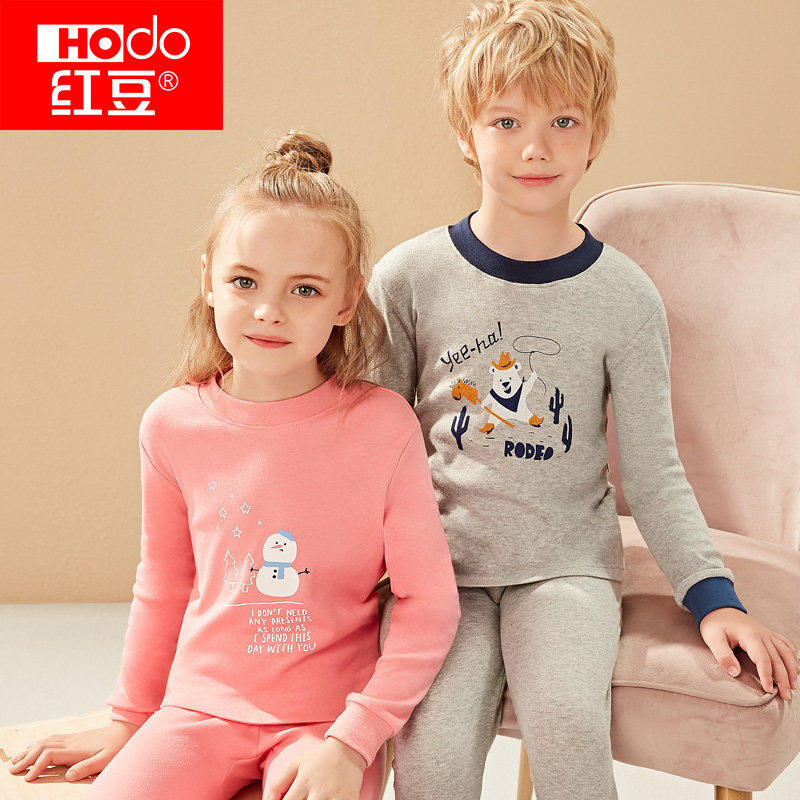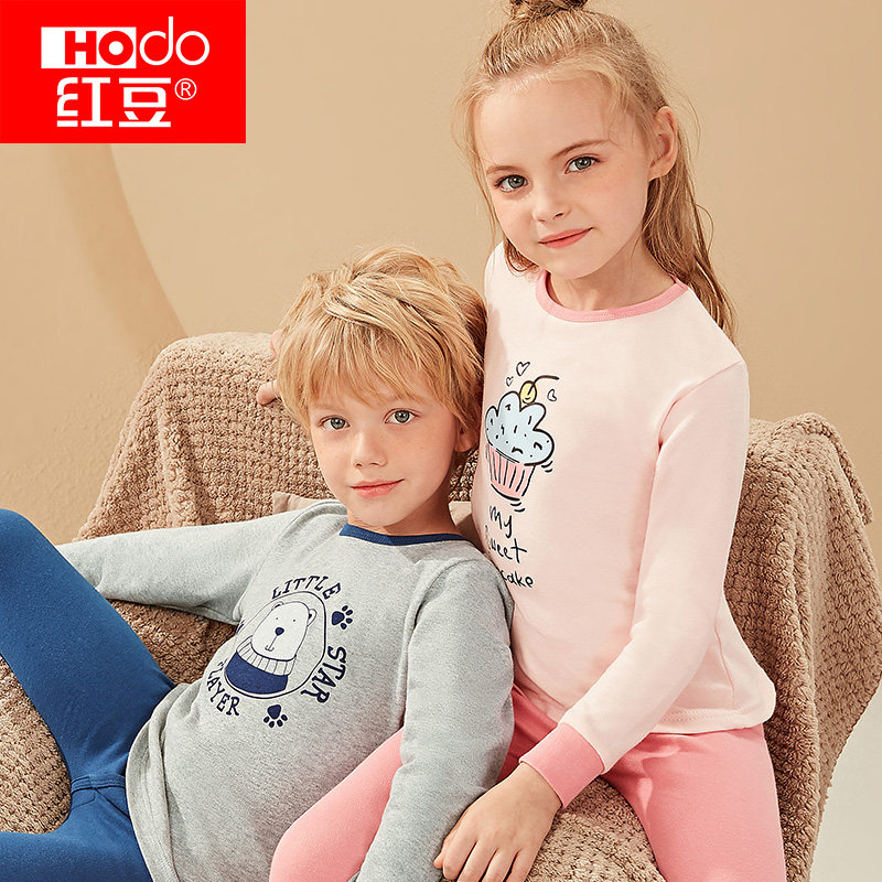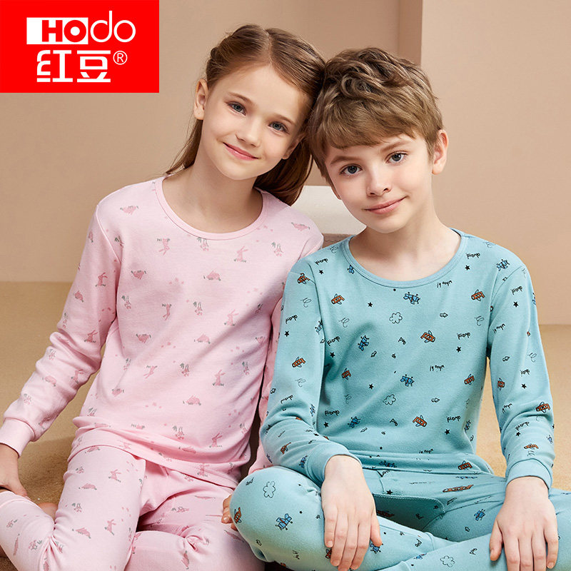 红豆居家儿童内衣套装纯棉男童线衣线裤大童女孩睡衣女童秋衣秋裤