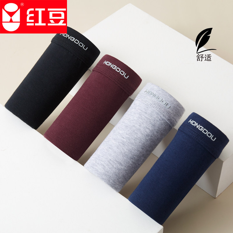 红豆居家男土内裤平角纯棉正品牌男子短裤头男装内衣男四角裤盒装
