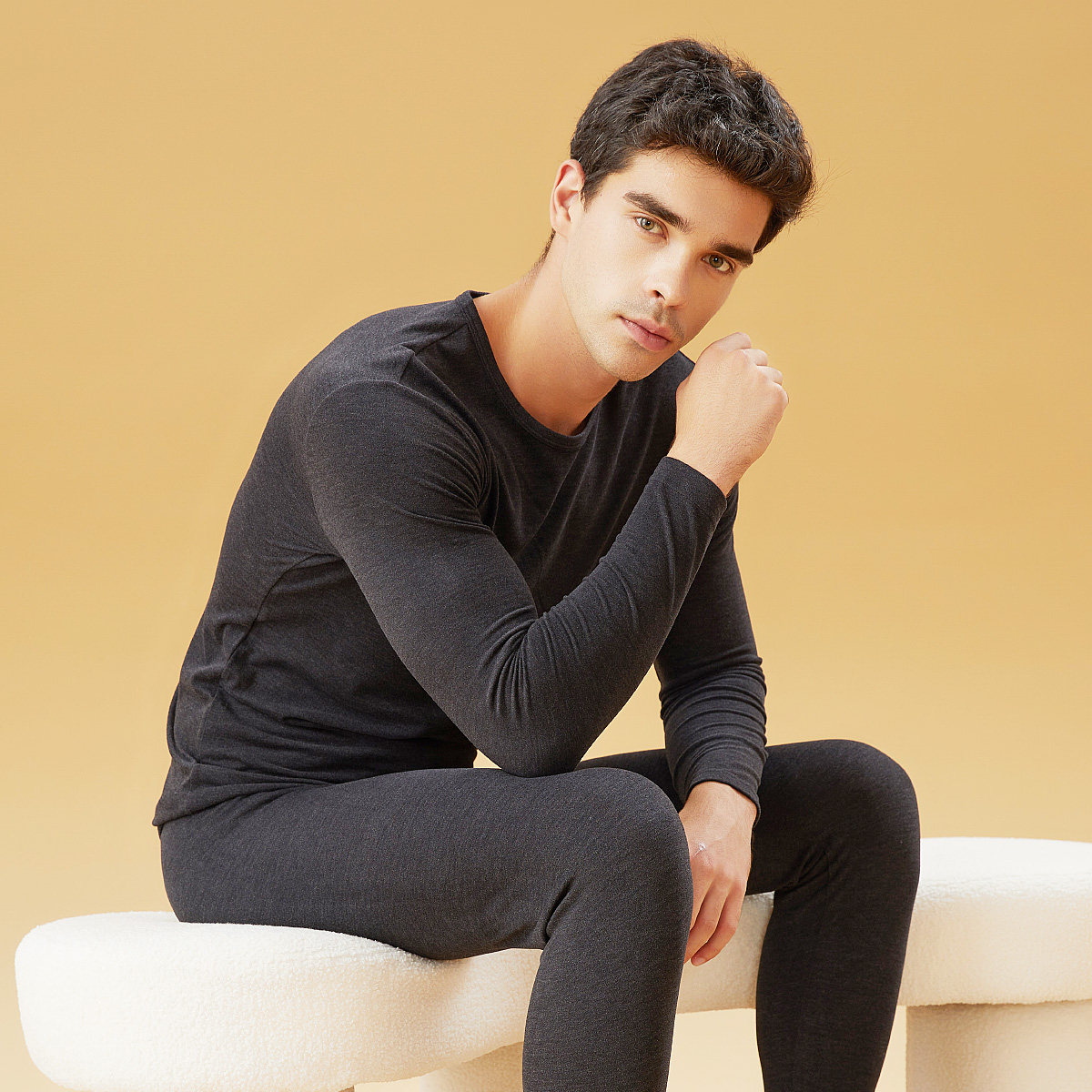 红豆居家保暖内衣磨毛青年男圆领秋衣秋裤套装秋冬季棉毛衫正品牌
