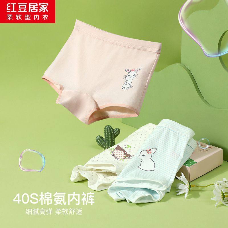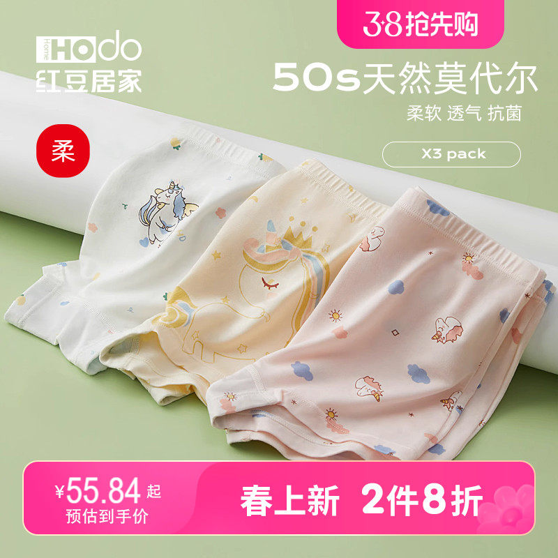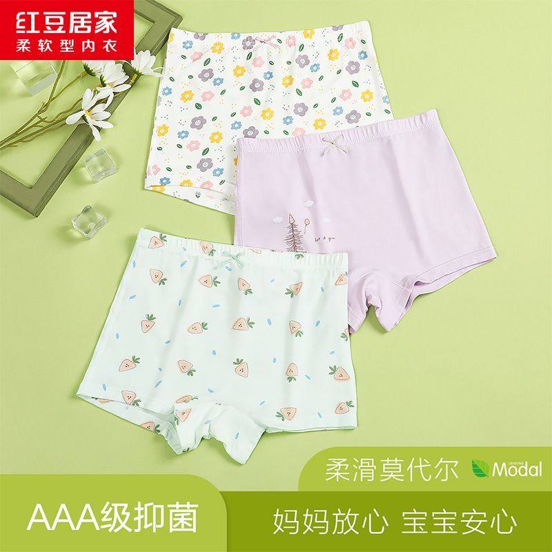 红豆居家40S莫代尔舒滑平角内裤3条装女童AAA级抑菌舒适透气短裤