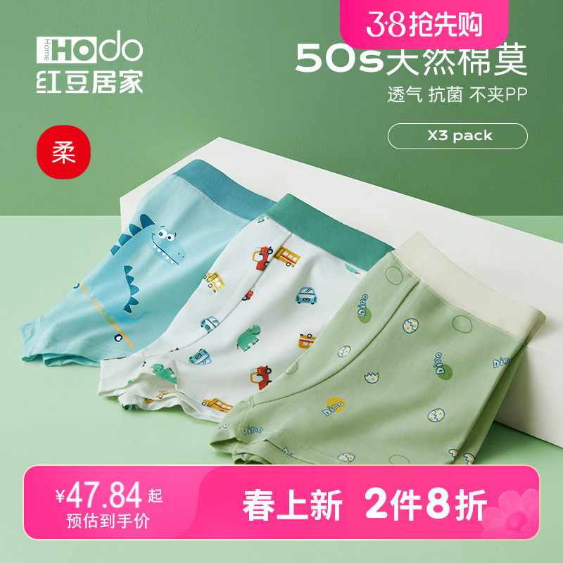 红豆男童内裤纯棉莫代尔四季中大童平角短裤儿童四角裤青少年春秋