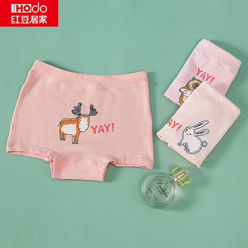 红豆居家3条装女童内裤童趣印花棉氨平角儿童内裤女中大童短裤女