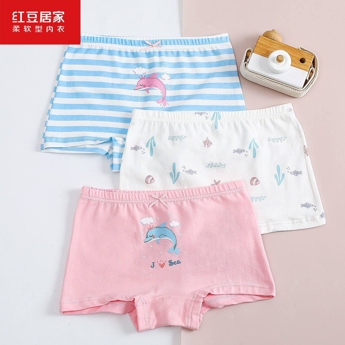红豆居家40S棉柔透气女童四角短裤3条装中大儿童高弹舒适平角内裤