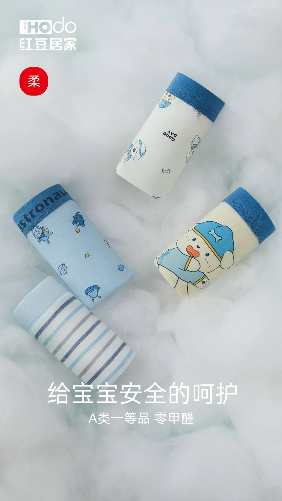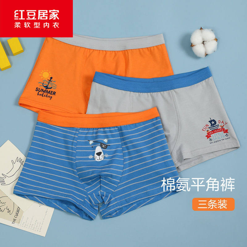 红豆居家三条装儿童内裤男童短裤平角四角裤中大童平底裤