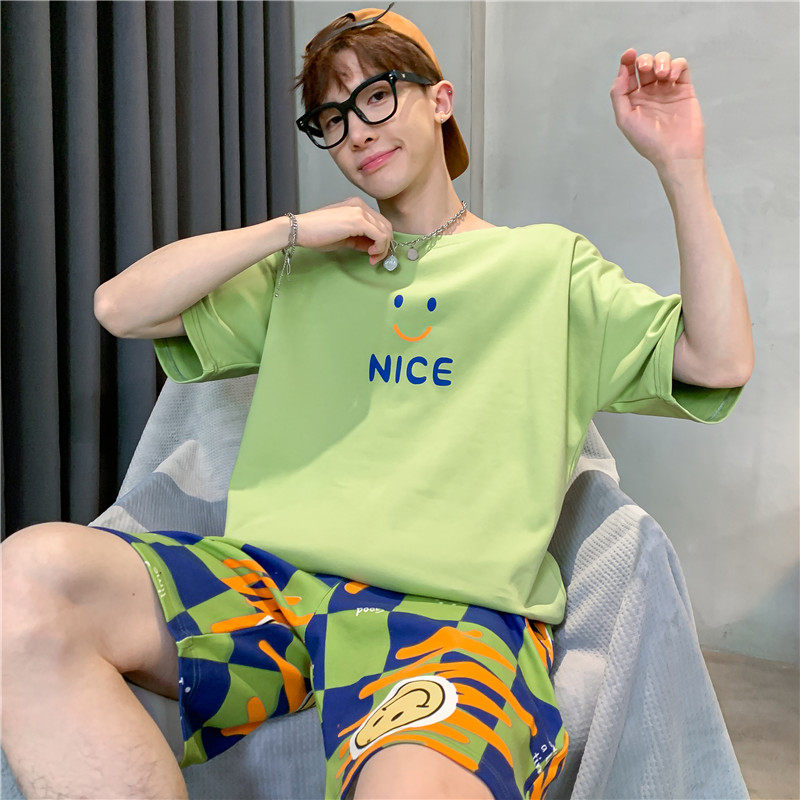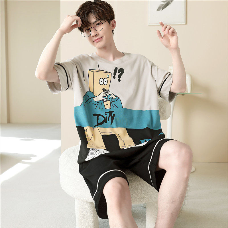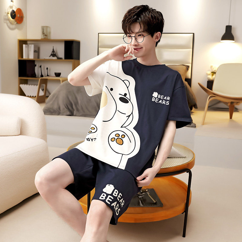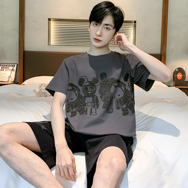 红豆男士睡衣夏季纯棉短袖短裤薄款卡通青少年学生大童夏天家居服