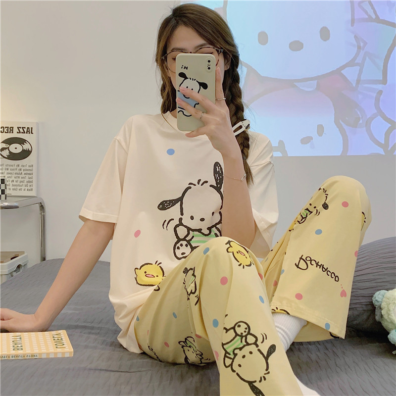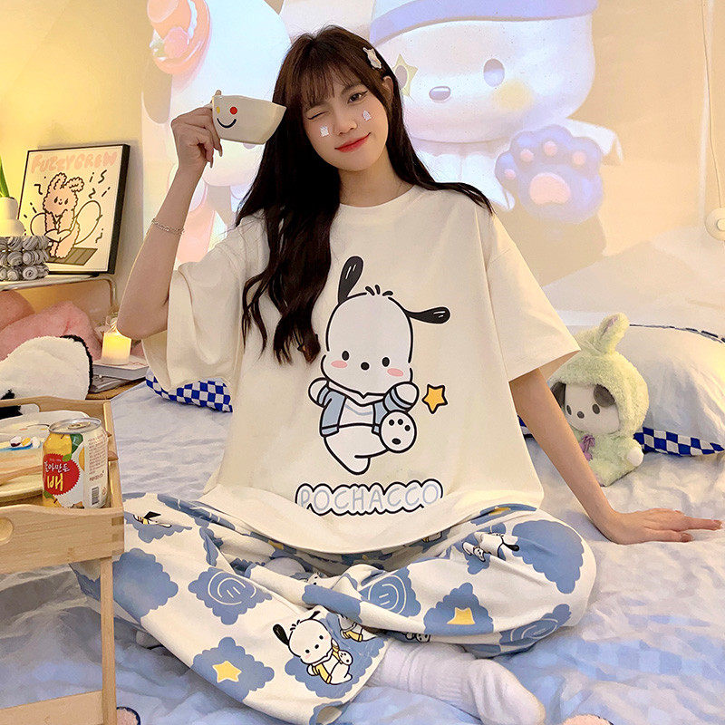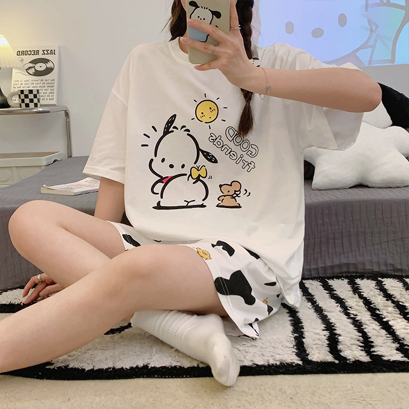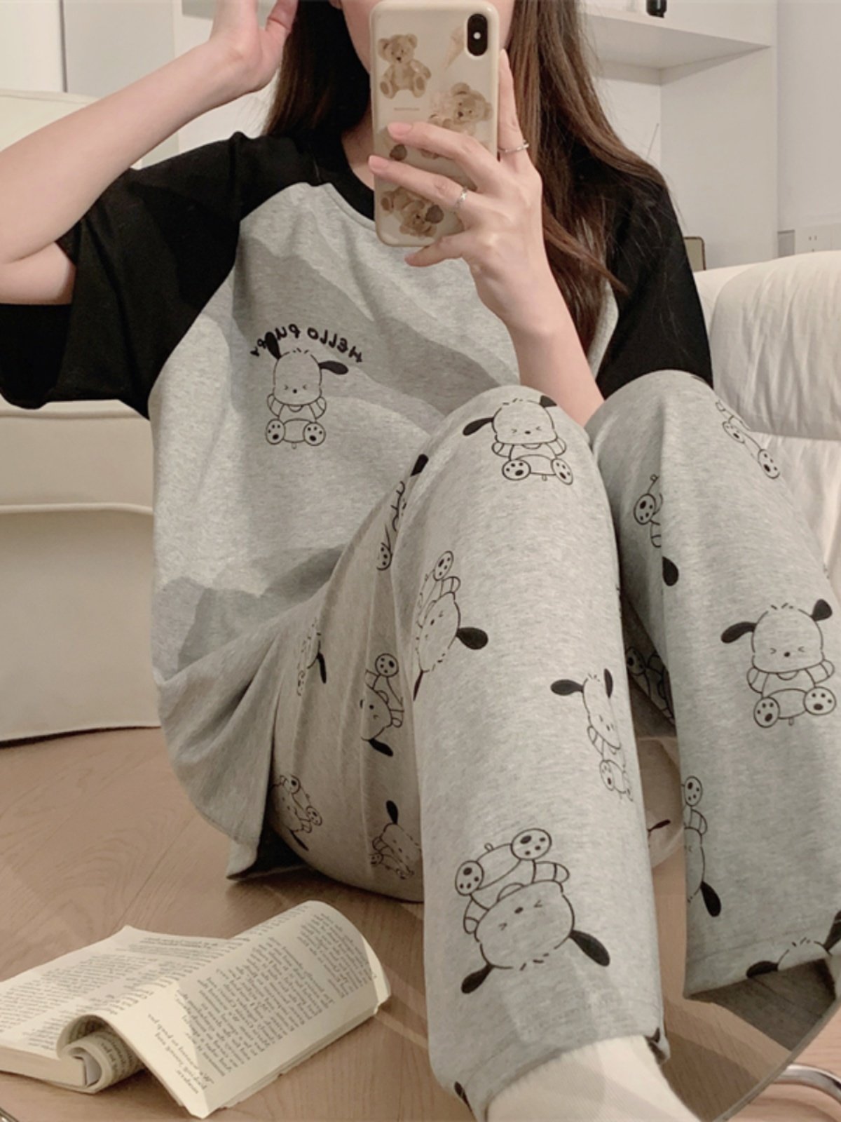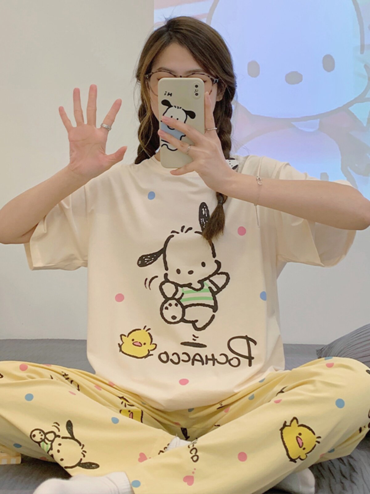 红豆初中生睡衣女孩大童夏卡通网红风帕恰狗短袖短裤奶呼呼家居服