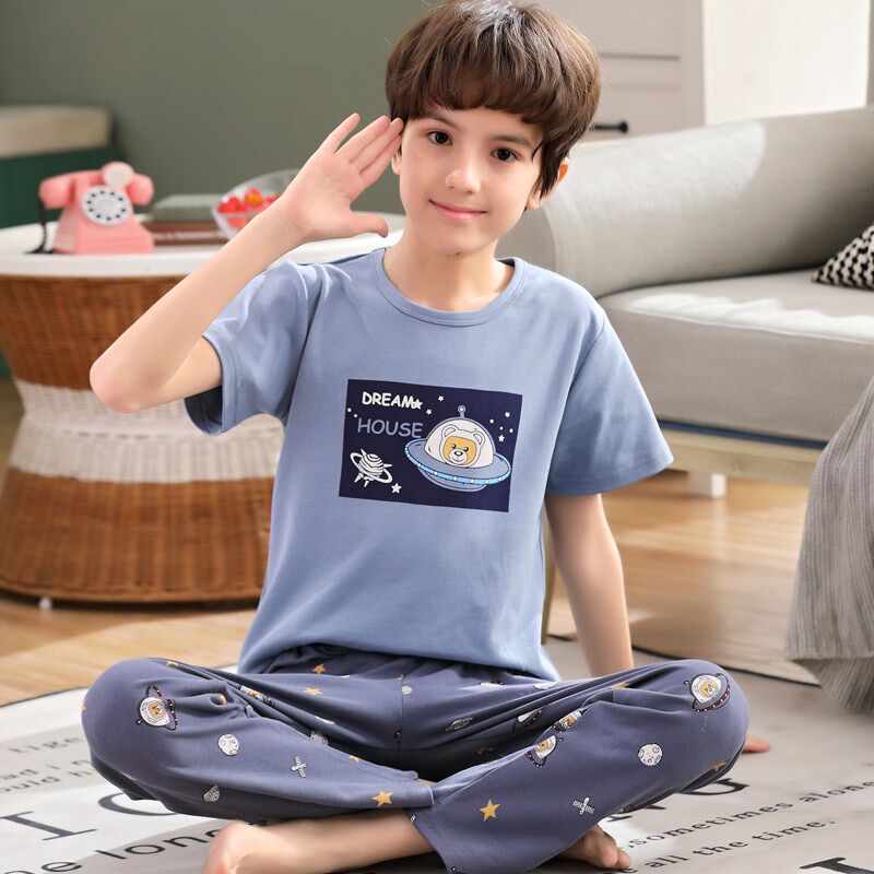 红豆居家中大童儿童睡衣男纯棉男童春夏季短袖长裤小孩薄款男孩家