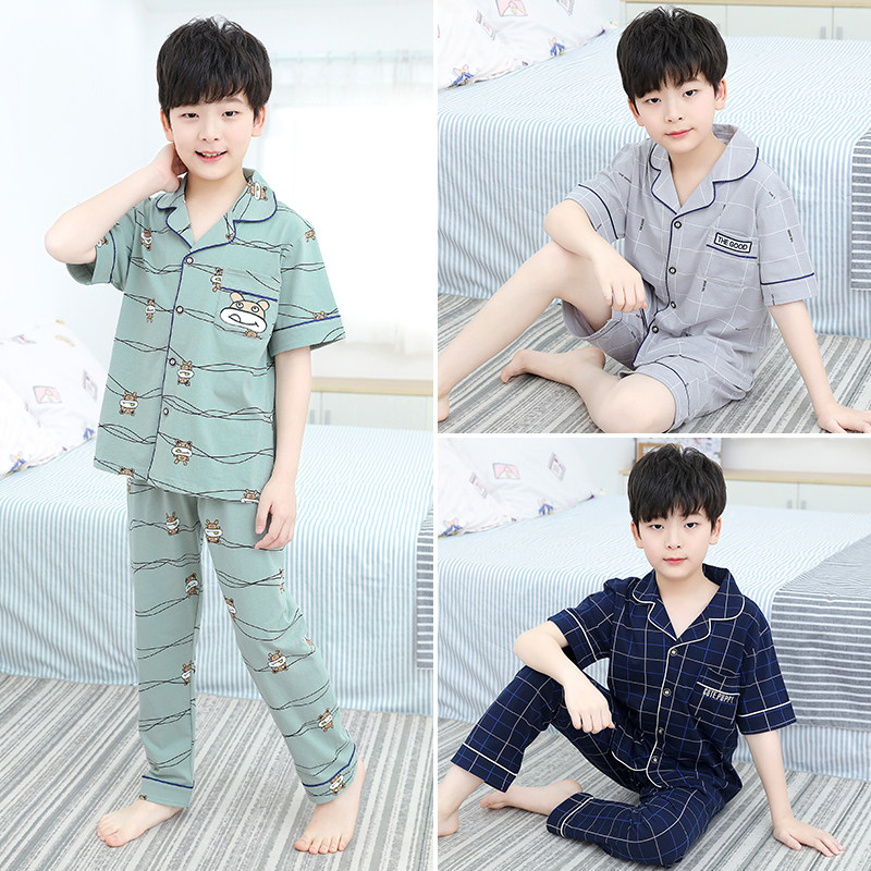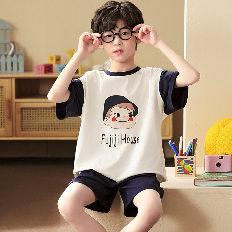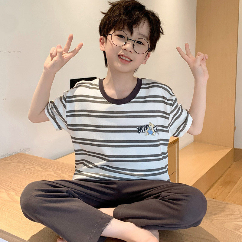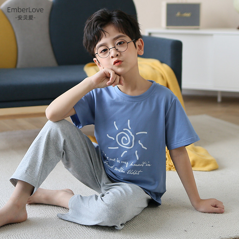 红豆儿童睡衣男夏季短袖纯棉套装男童居家服睡衣薄款中大童空调服