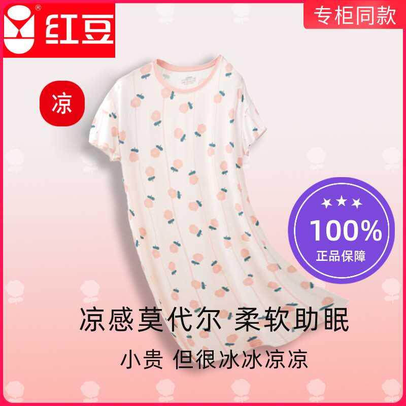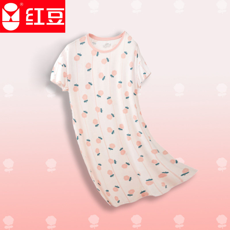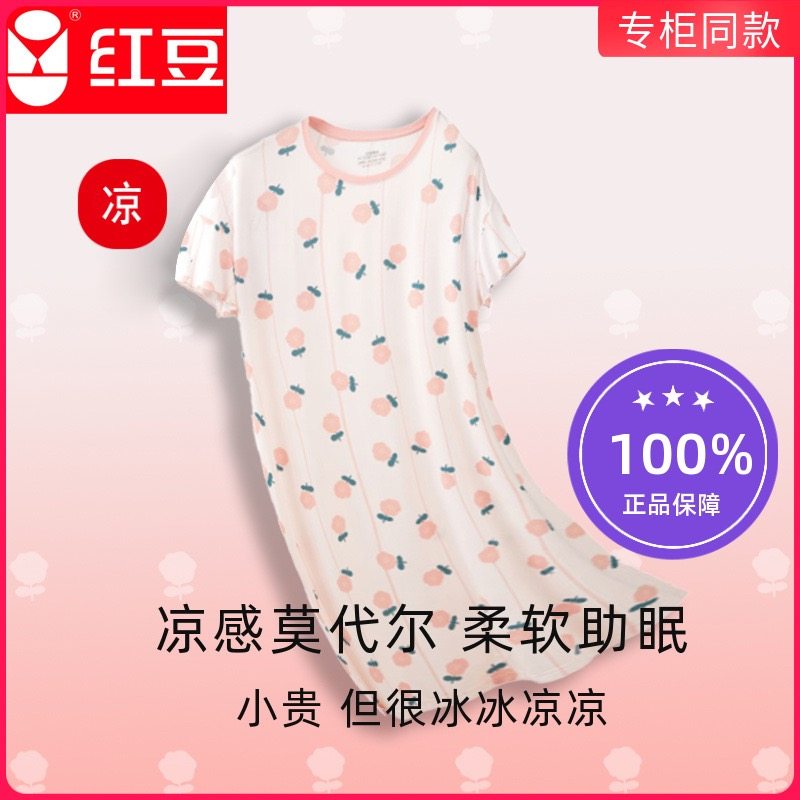 正品红豆50S莫代尔女士睡裙女童短袖可外穿居家服睡衣裙春夏女生