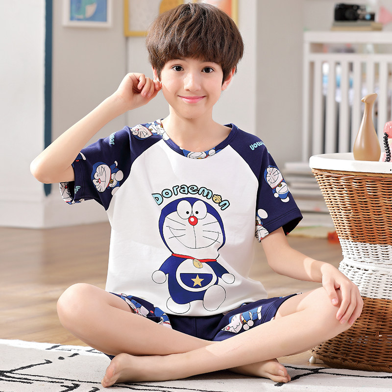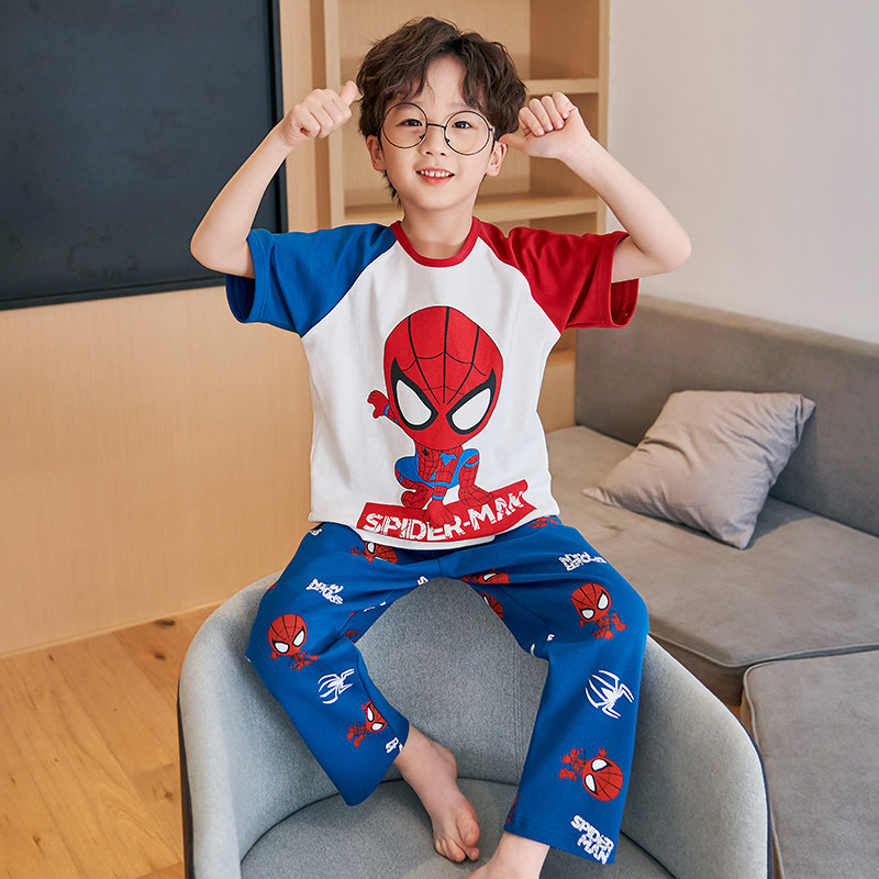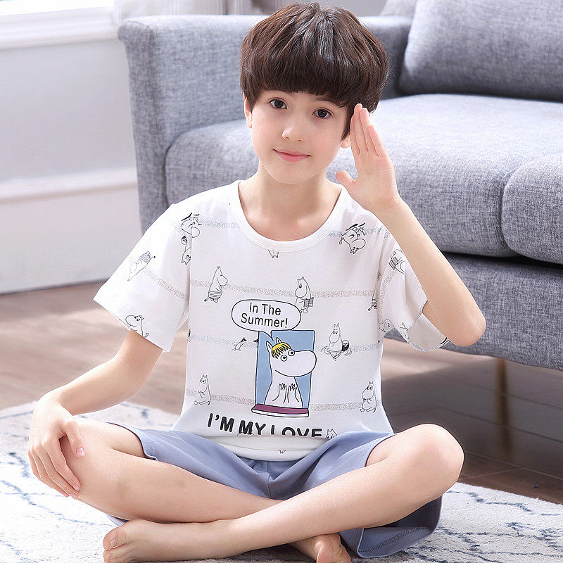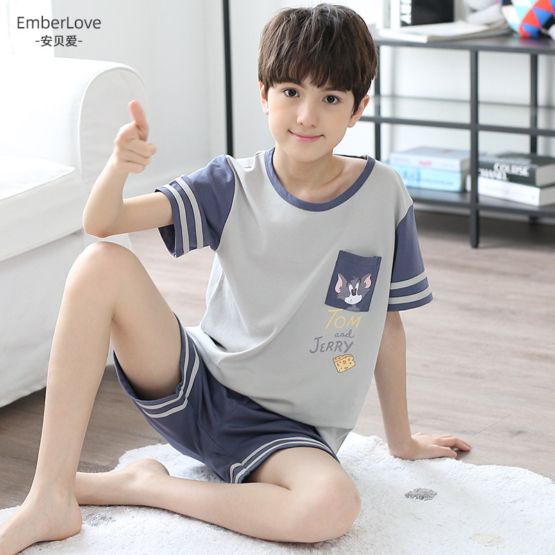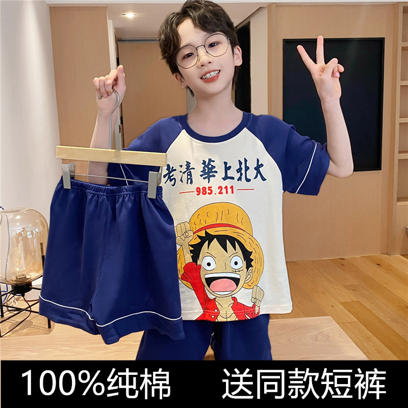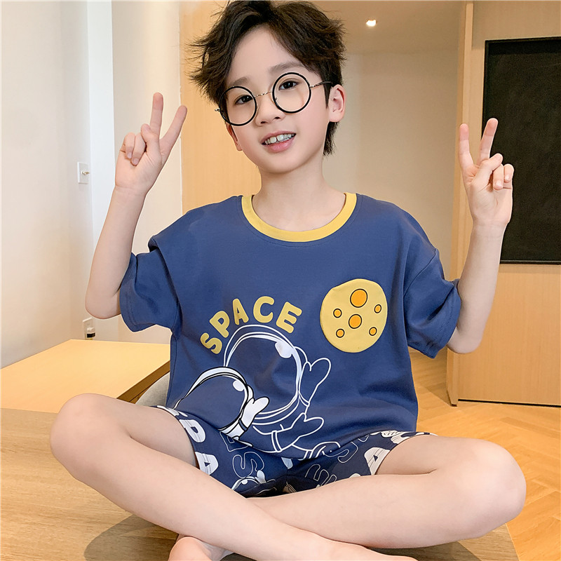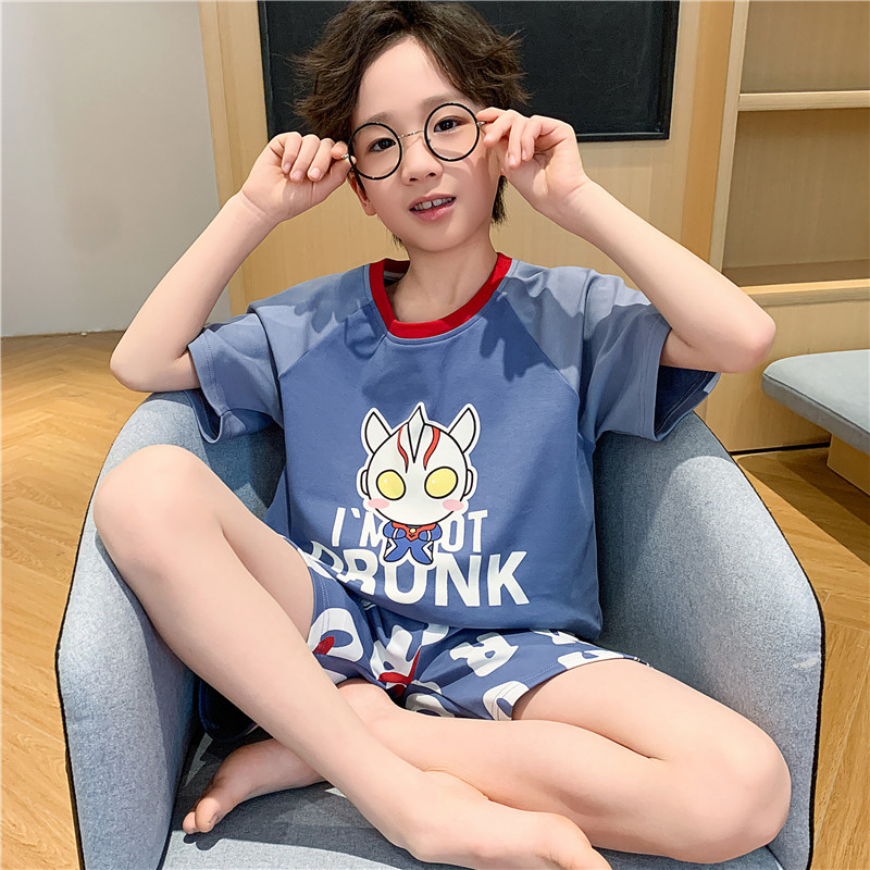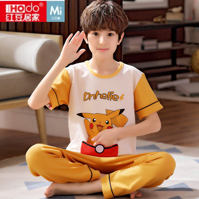 红豆儿童睡衣男童短袖纯棉夏季薄款卡通男孩12-15岁中大童家居服