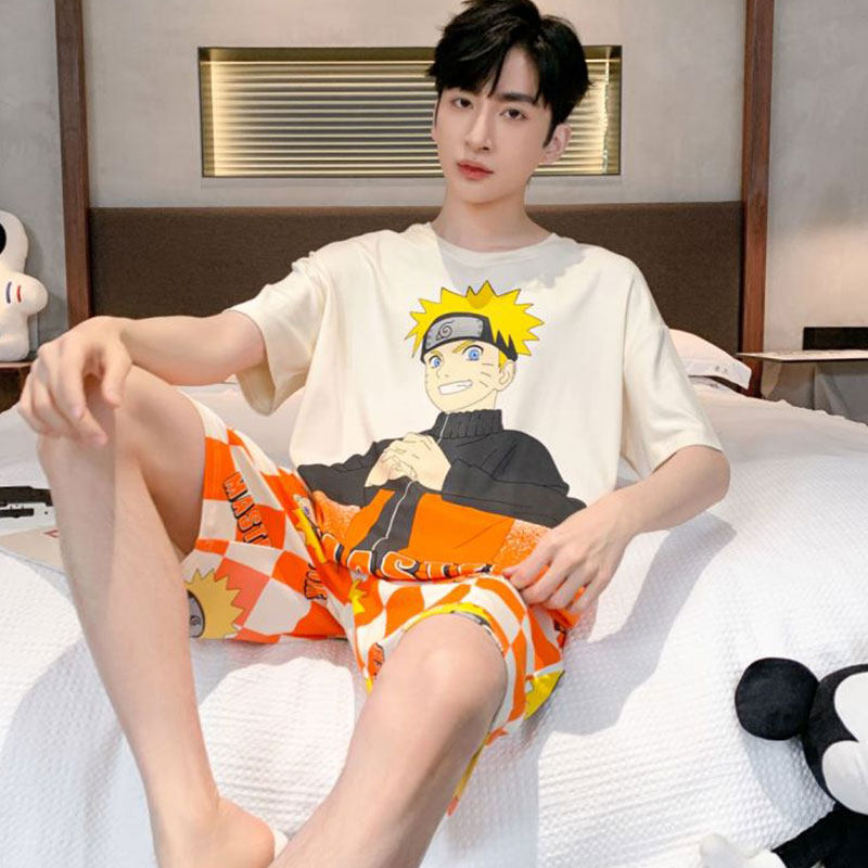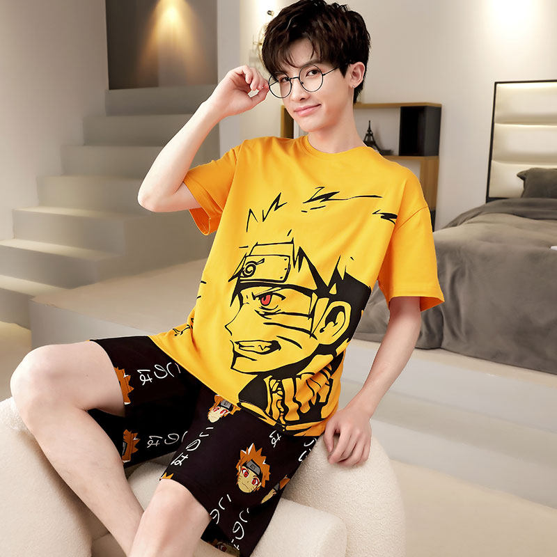 红豆睡衣男夏季薄款短袖纯棉卡通动漫青少年初中生火影忍者鼬鸣人