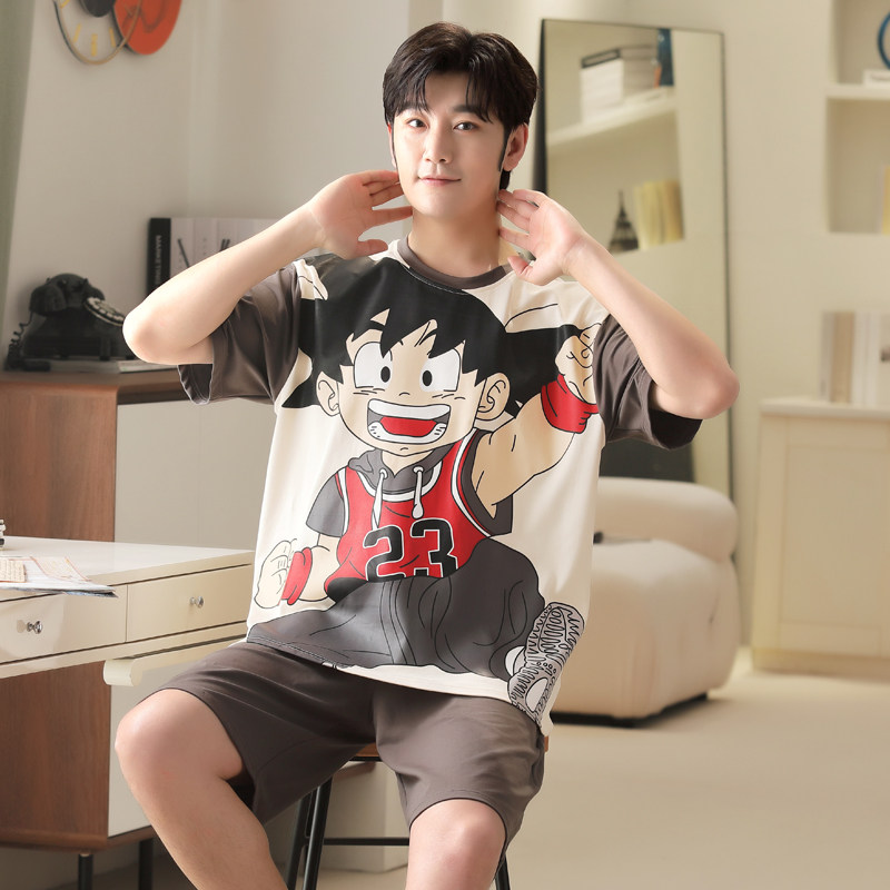 红豆睡衣男夏短袖薄款纯棉卡通悟空七龙珠青少年大童初中学生ins