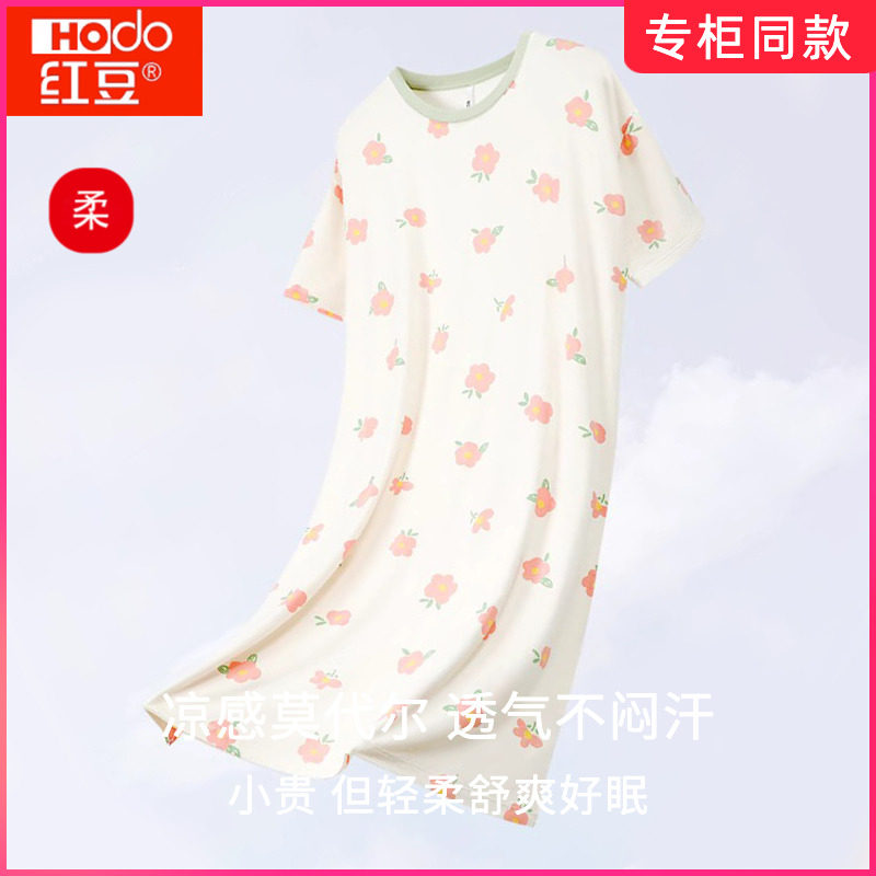正品红豆凉感50S莫代尔女士女童短袖可外穿居家服睡衣裙女款夏季