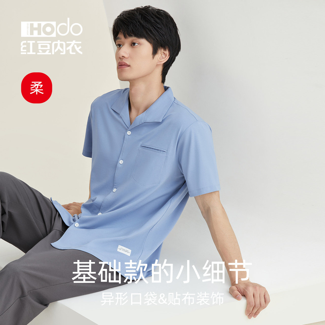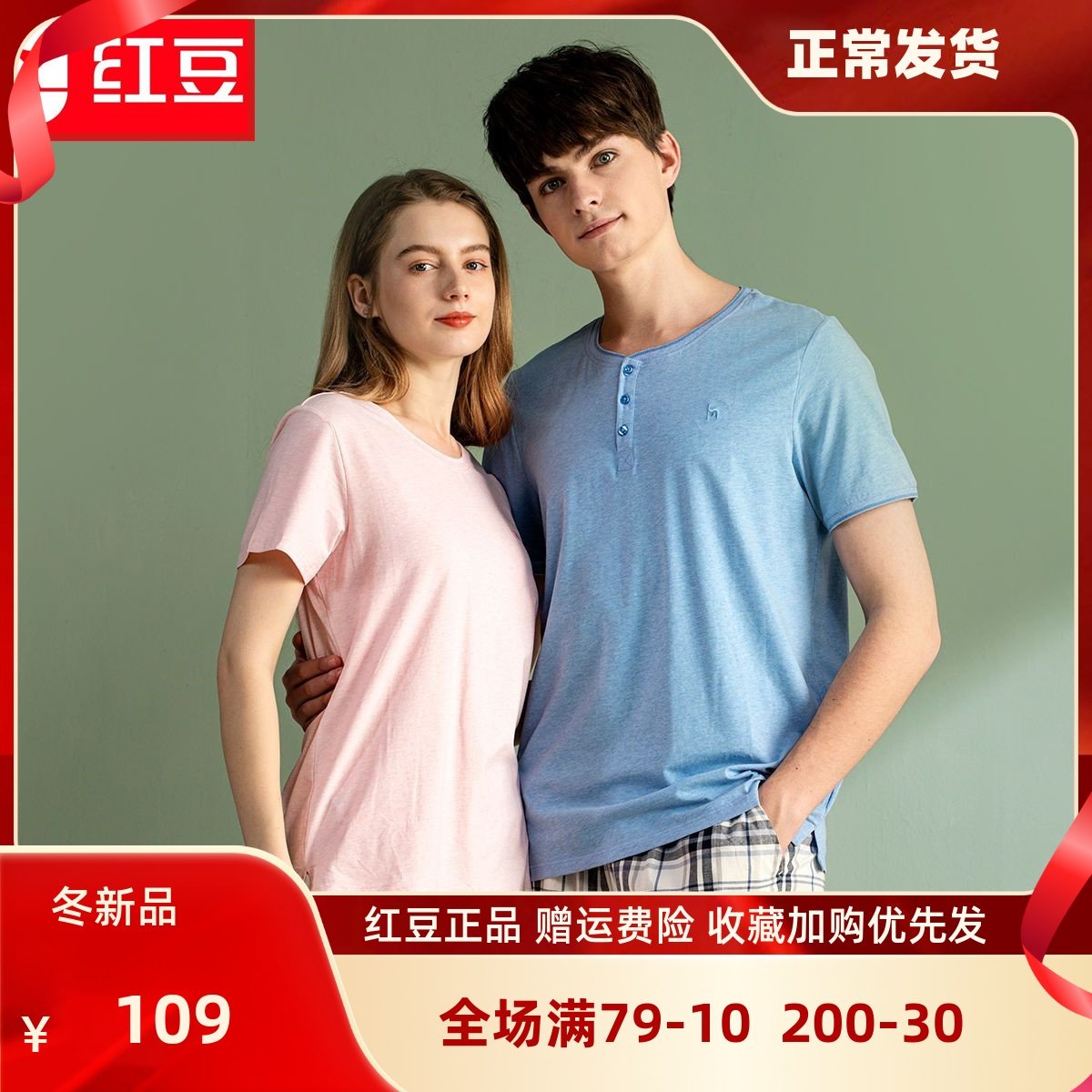 红豆居家男女士100%纯棉质睡衣夏季短袖情侣薄款可外穿家居服套装