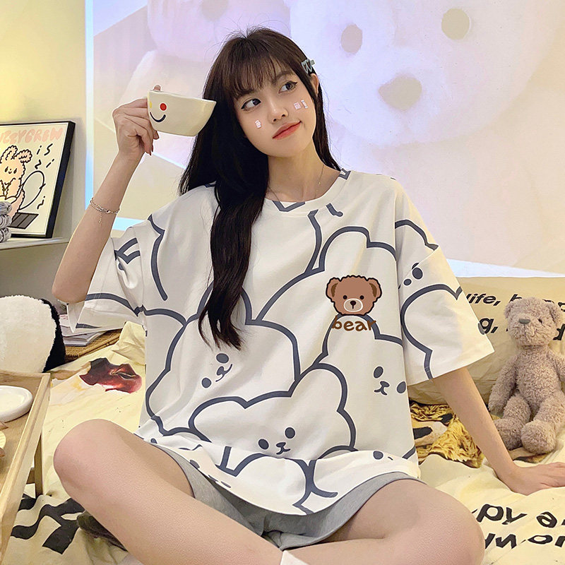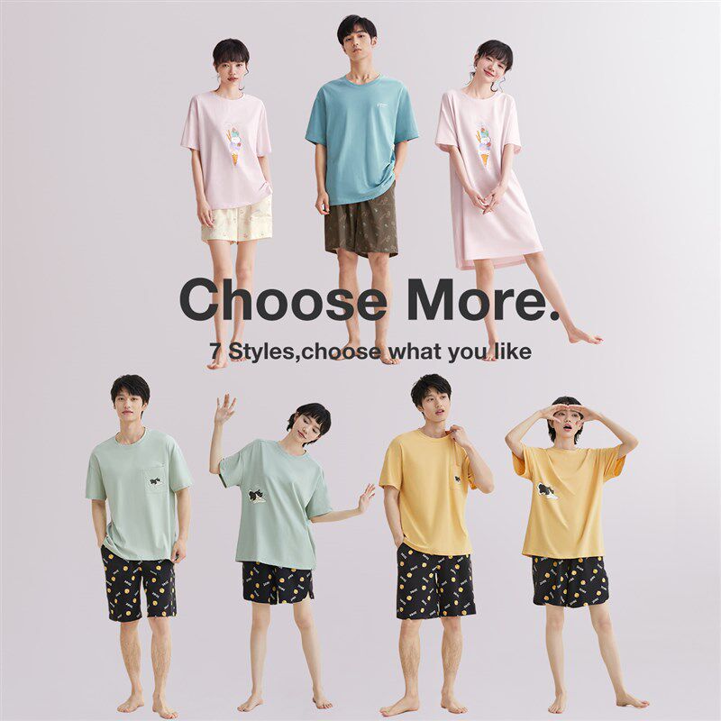 【凉感】红豆居家情侣睡衣夏季可外穿短袖睡裙可爱宽松家居服套装