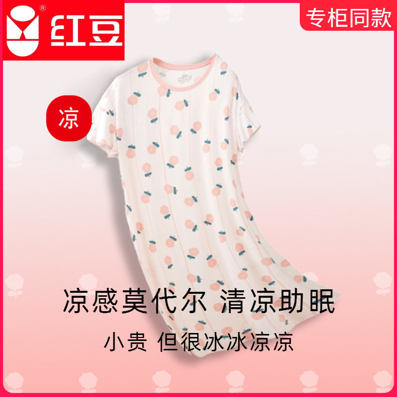 正品红豆夏季薄款凉感50S莫代尔女士女童短袖可外穿居家服睡衣裙