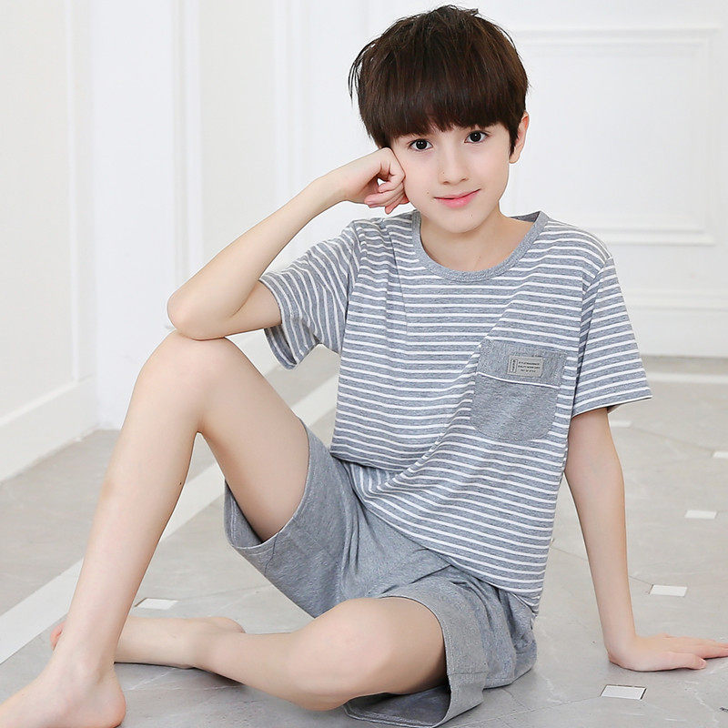 红豆青少年夏季睡衣男孩12岁短袖纯棉15初中学生男童中大童薄款