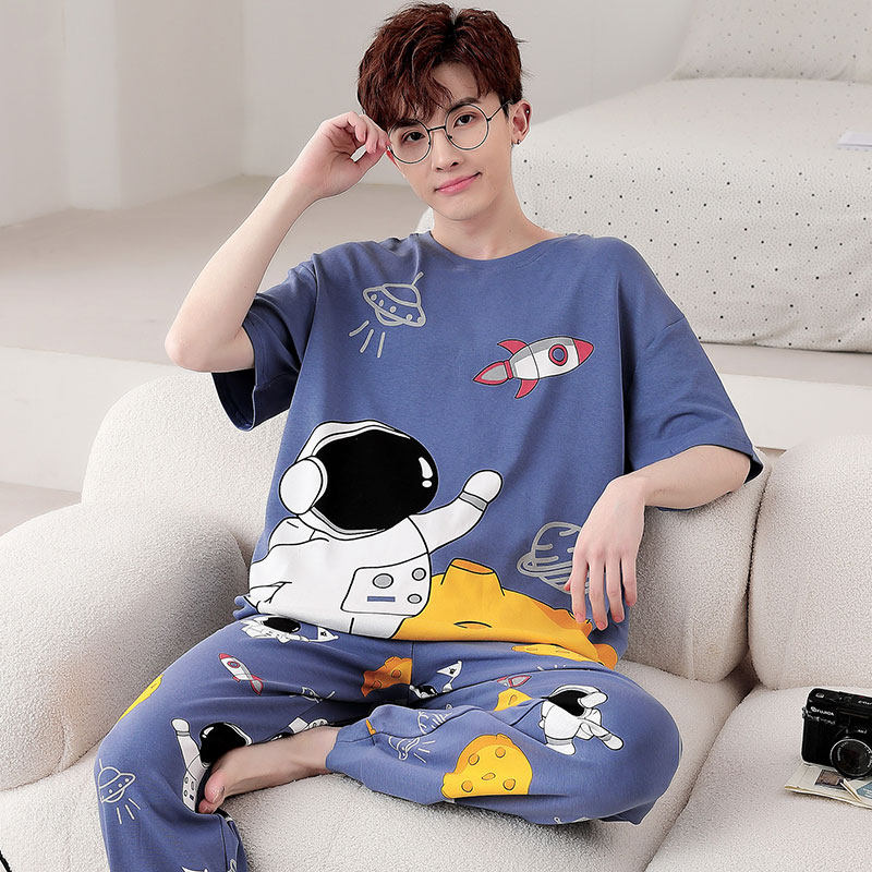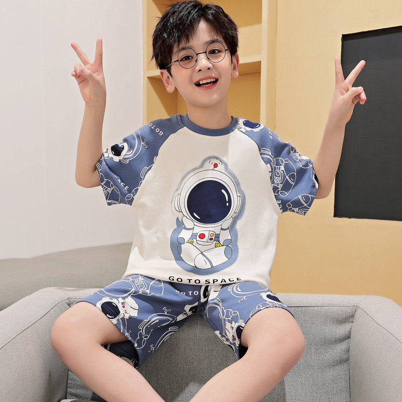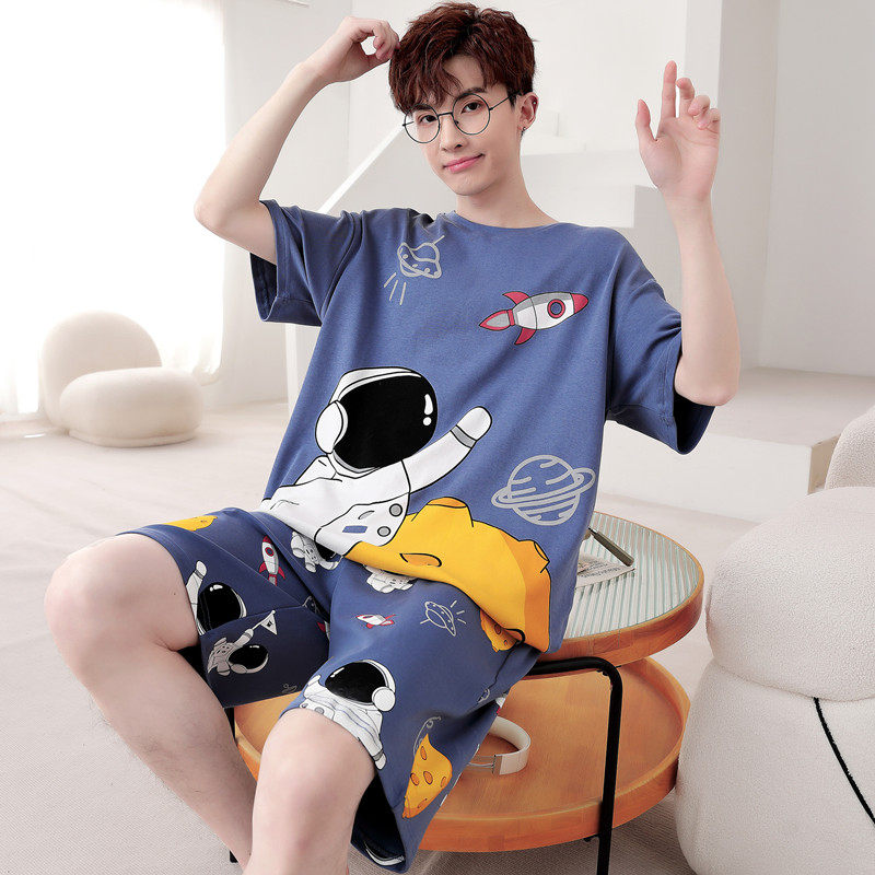 红豆睡衣男夏季纯棉薄款短袖宇航员网红风青少年初中学生大童13岁