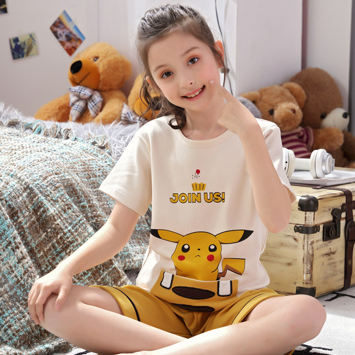 红豆睡衣女孩2024夏季新款短袖短裤纯棉薄款初中学生网红可爱大童
