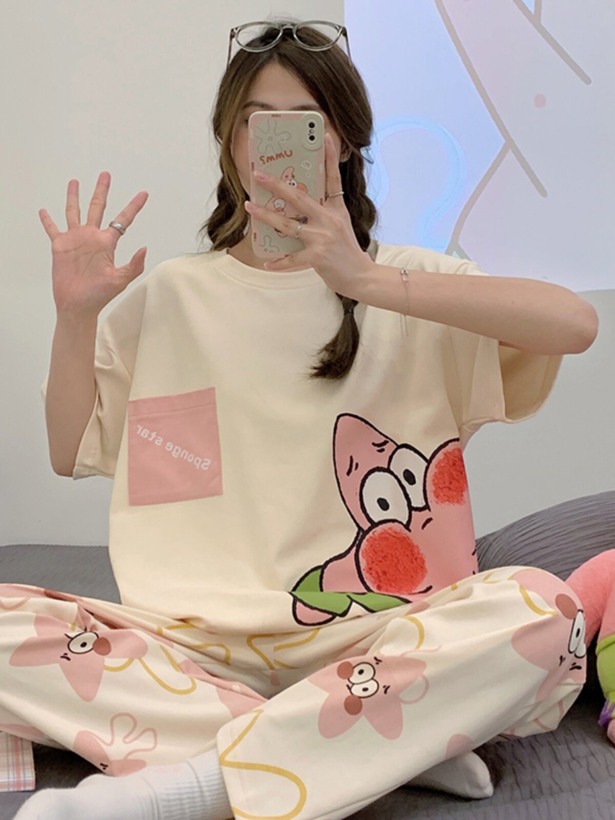 红豆初中生睡衣女孩2024夏季薄款短袖长裤纯棉可爱派大星大童13岁